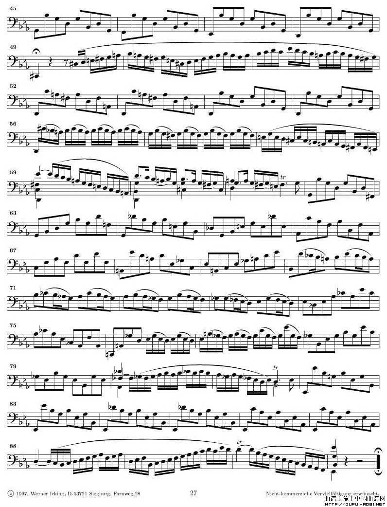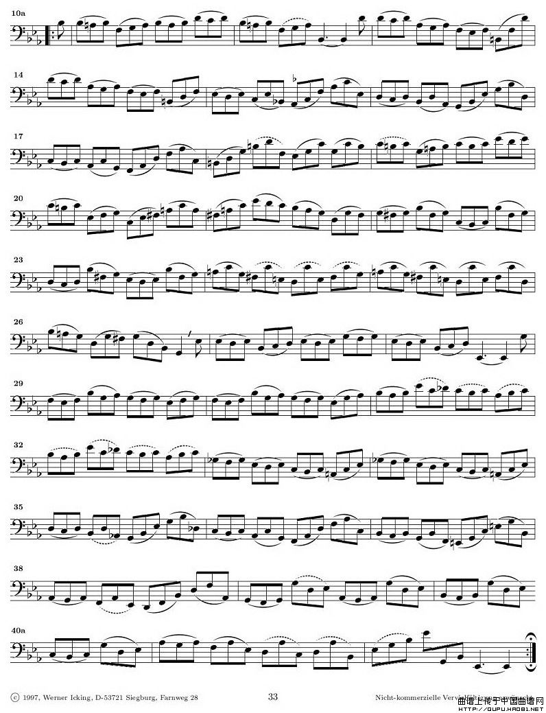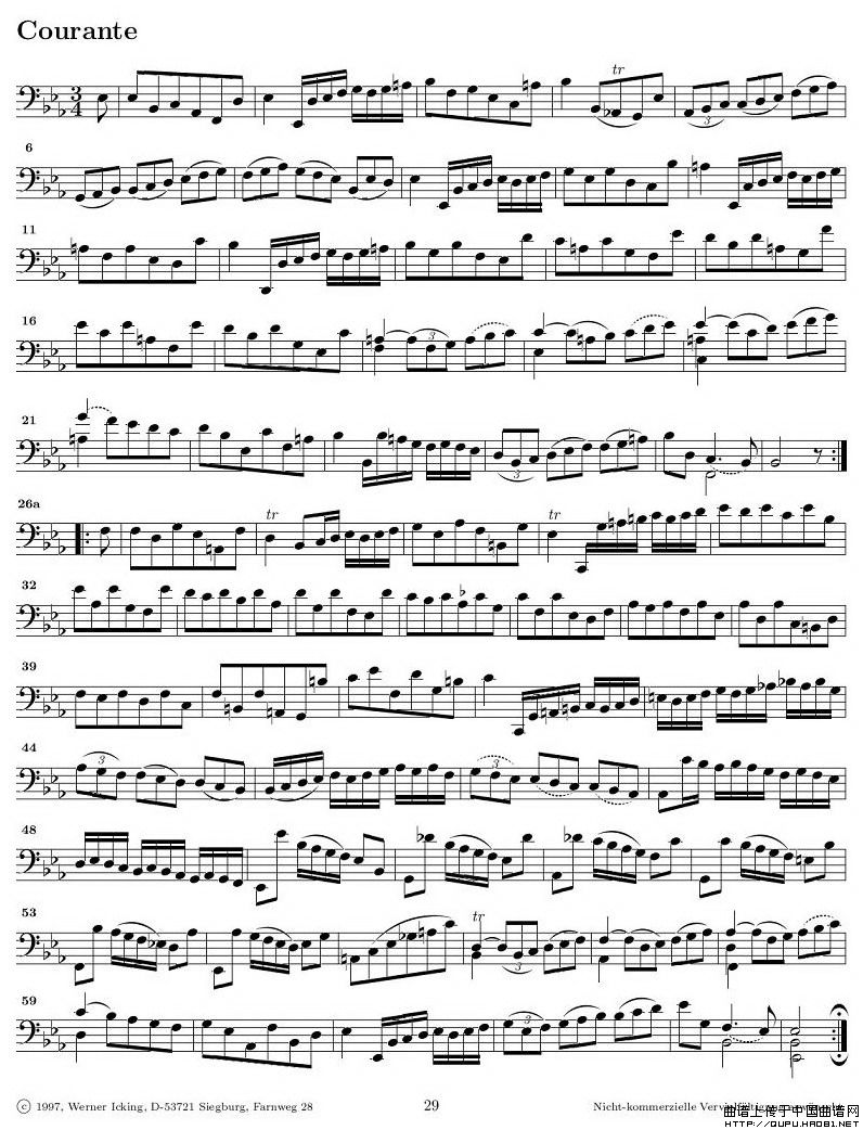 巴赫无伴奏大提琴练习曲之四相关五线谱