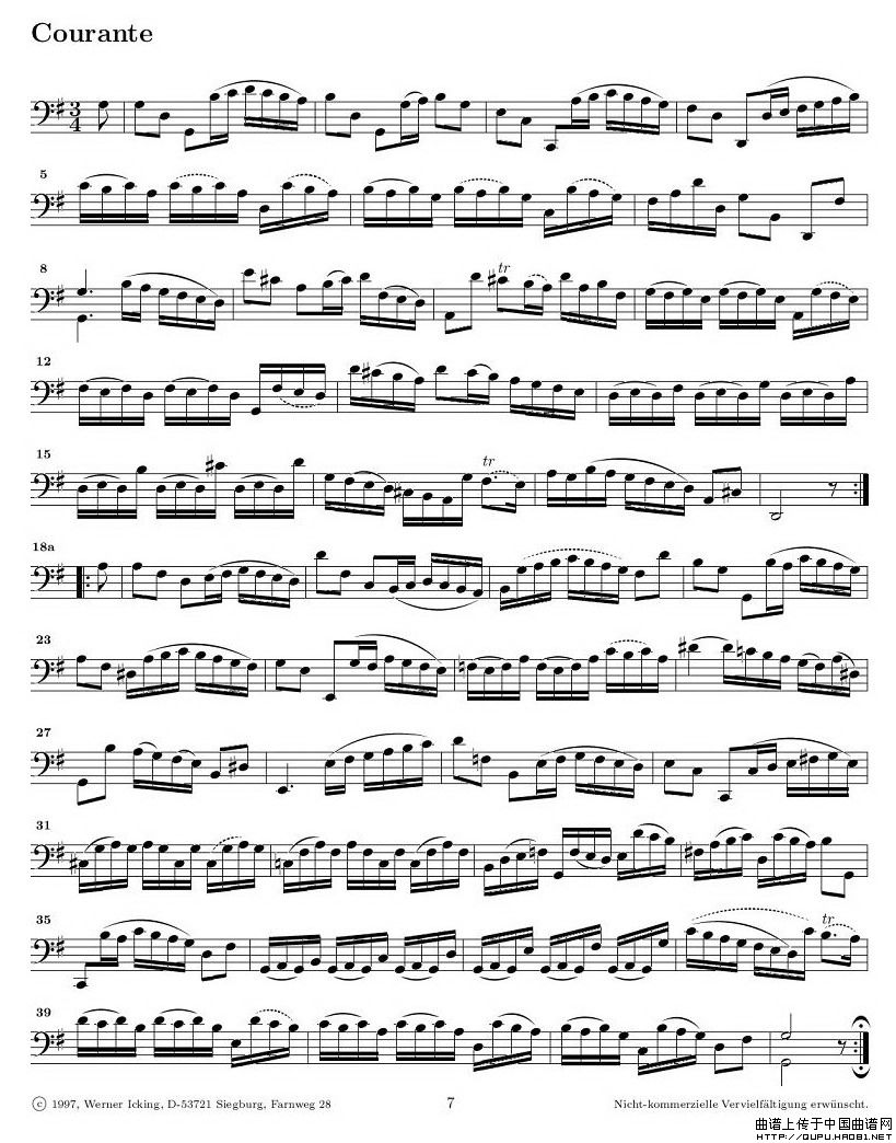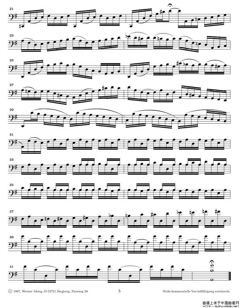 巴赫无伴奏大提琴练习曲之一相关五线谱