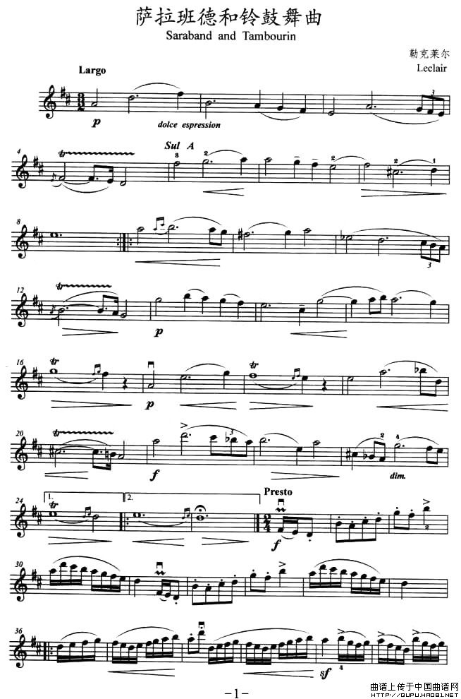 萨垃班德和铃鼓舞曲(小提琴分谱)