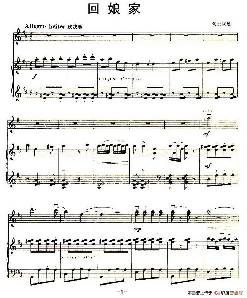 回娘家(河北民歌)(小提琴+钢琴伴奏)相关五线谱