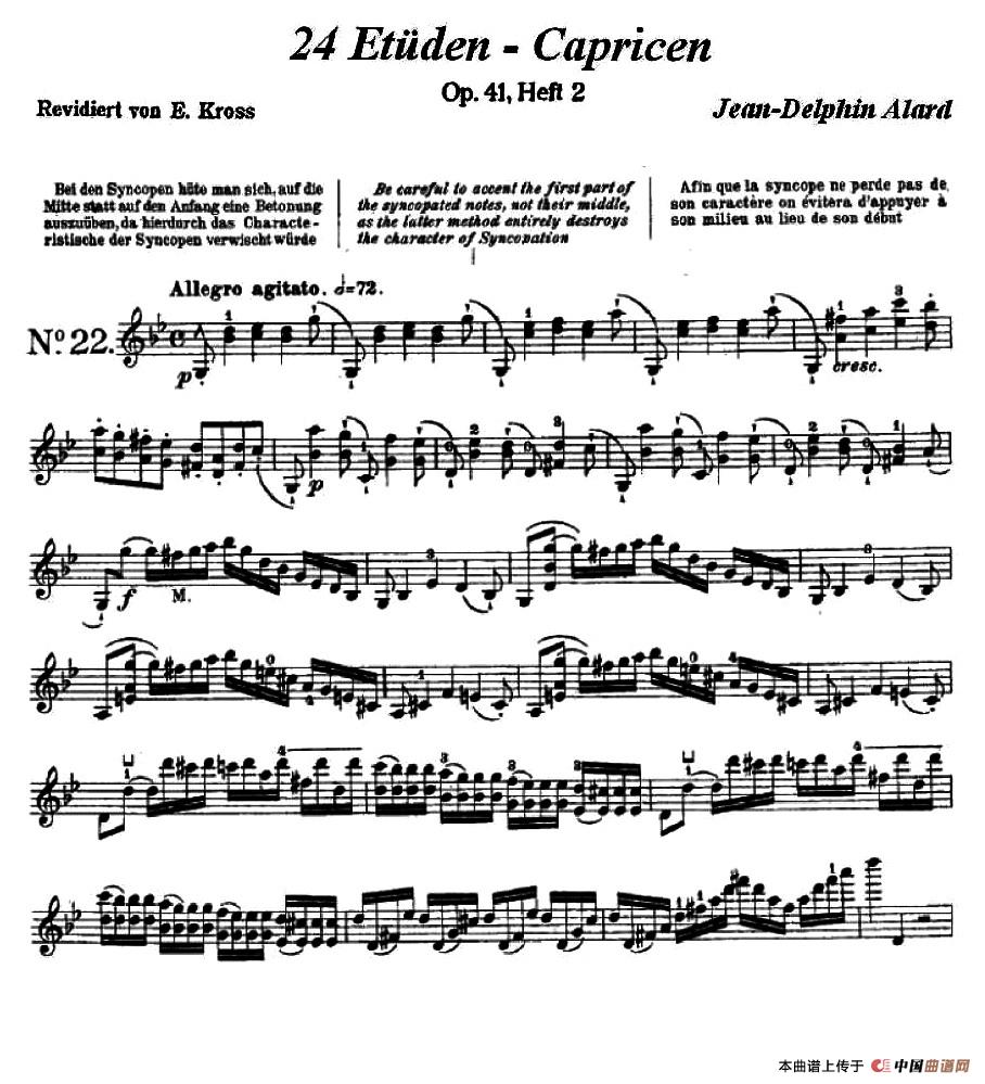 让·德尔菲·阿拉尔-12首小提琴隨想练习曲之22相关五线谱