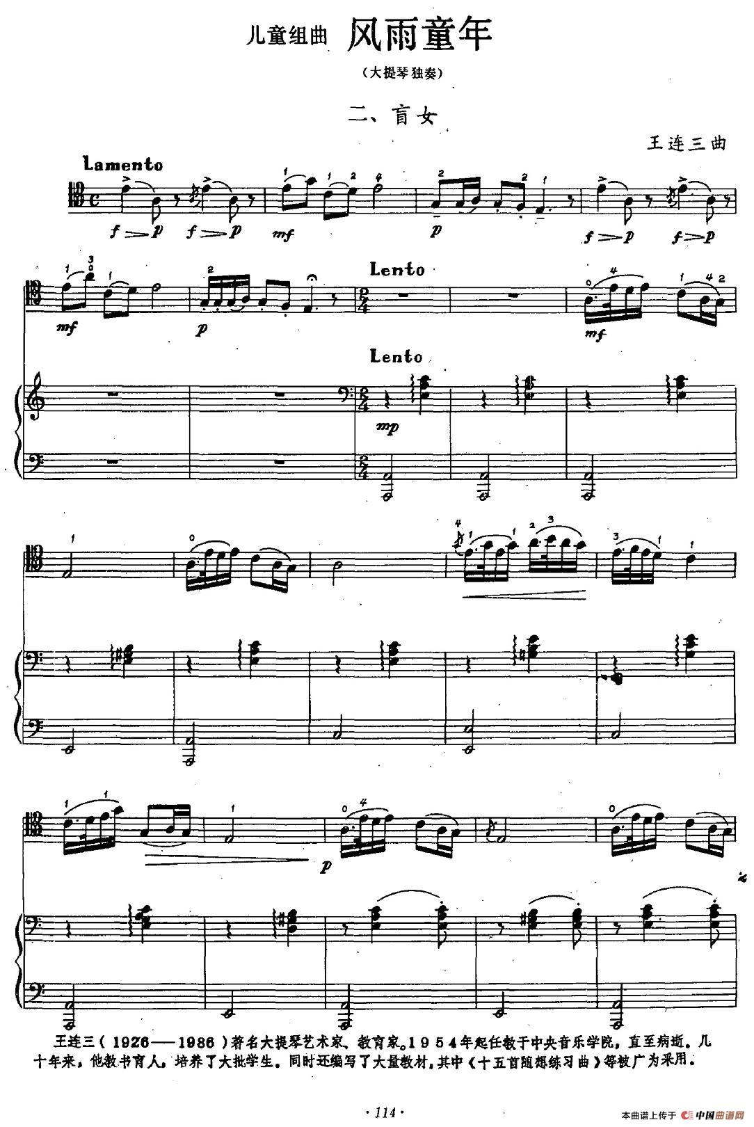 风雨童年二、盲女(大提琴独奏)相关五线谱