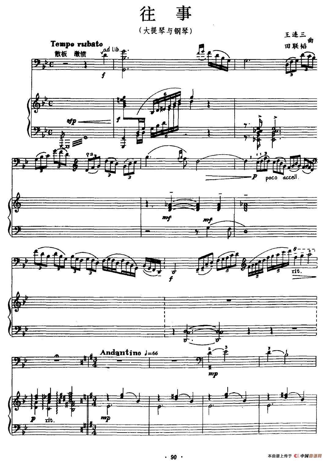 往事(大提琴+钢琴)相关五线谱