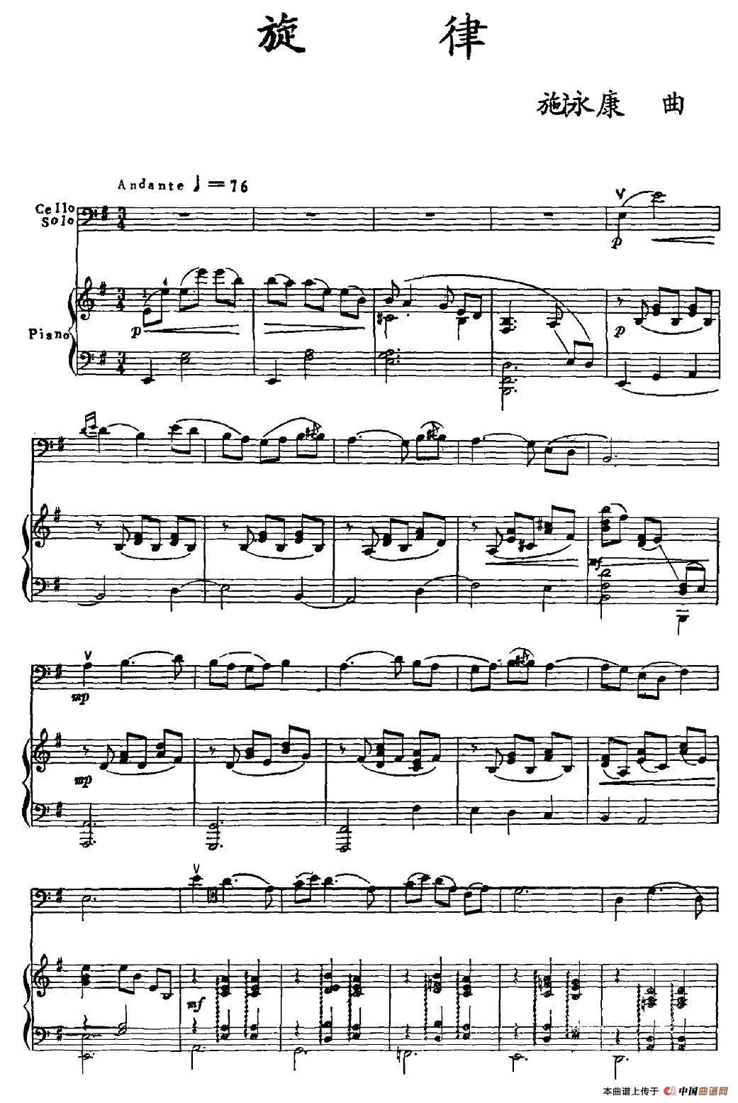 旋律(大提琴+钢琴)相关五线谱