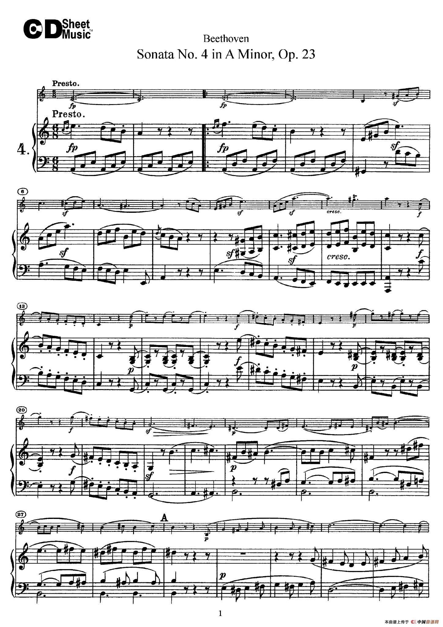 - A小调第四小提琴奏鸣曲(Sonata No.4 in A Minor Op.23)