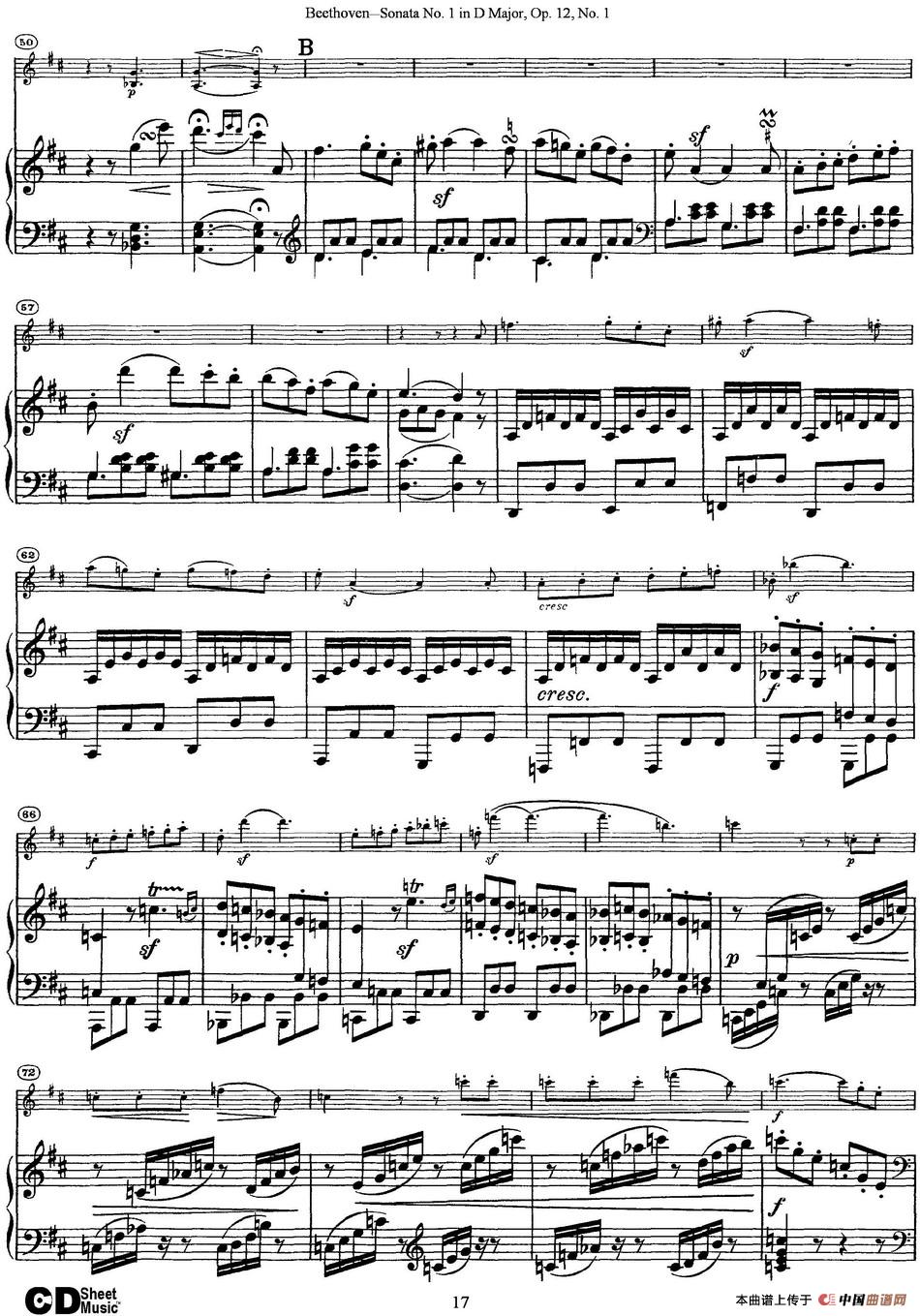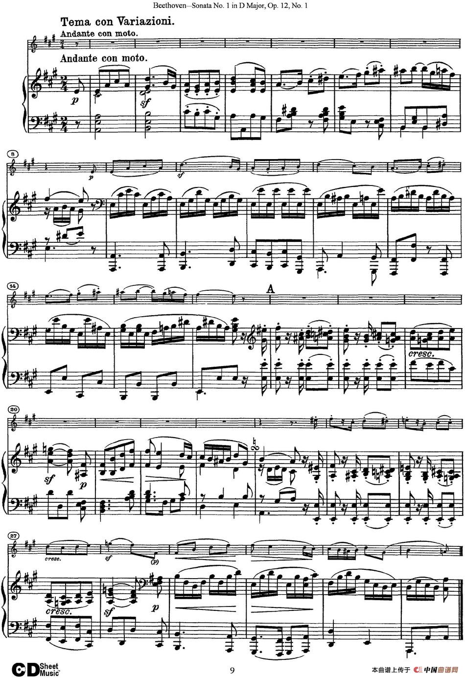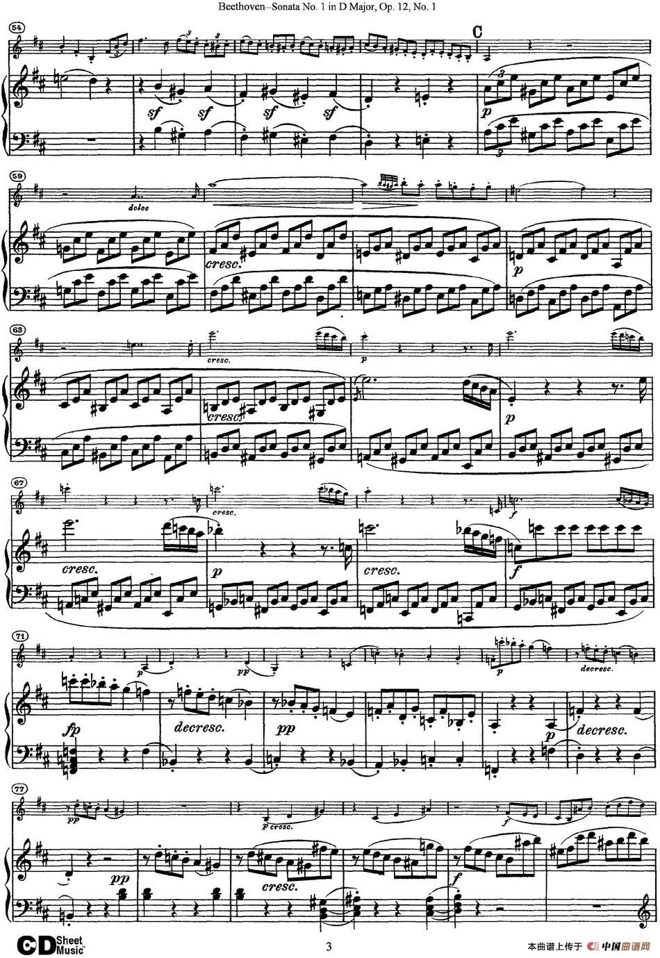 Violin Sonata No.1 in D Major Op.12 No.1(小提琴+钢琴伴奏)相关五线谱