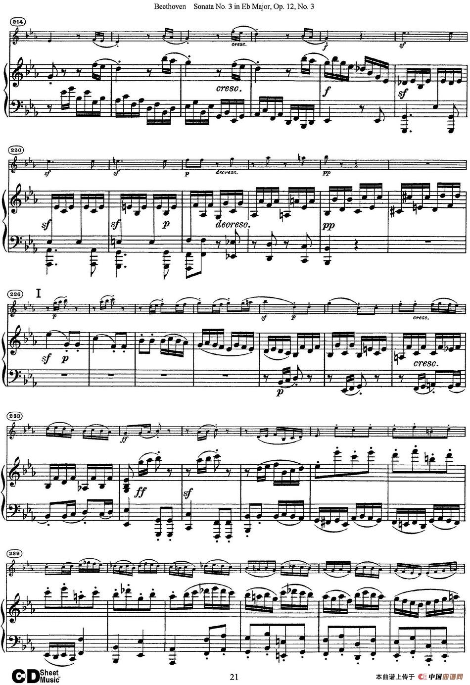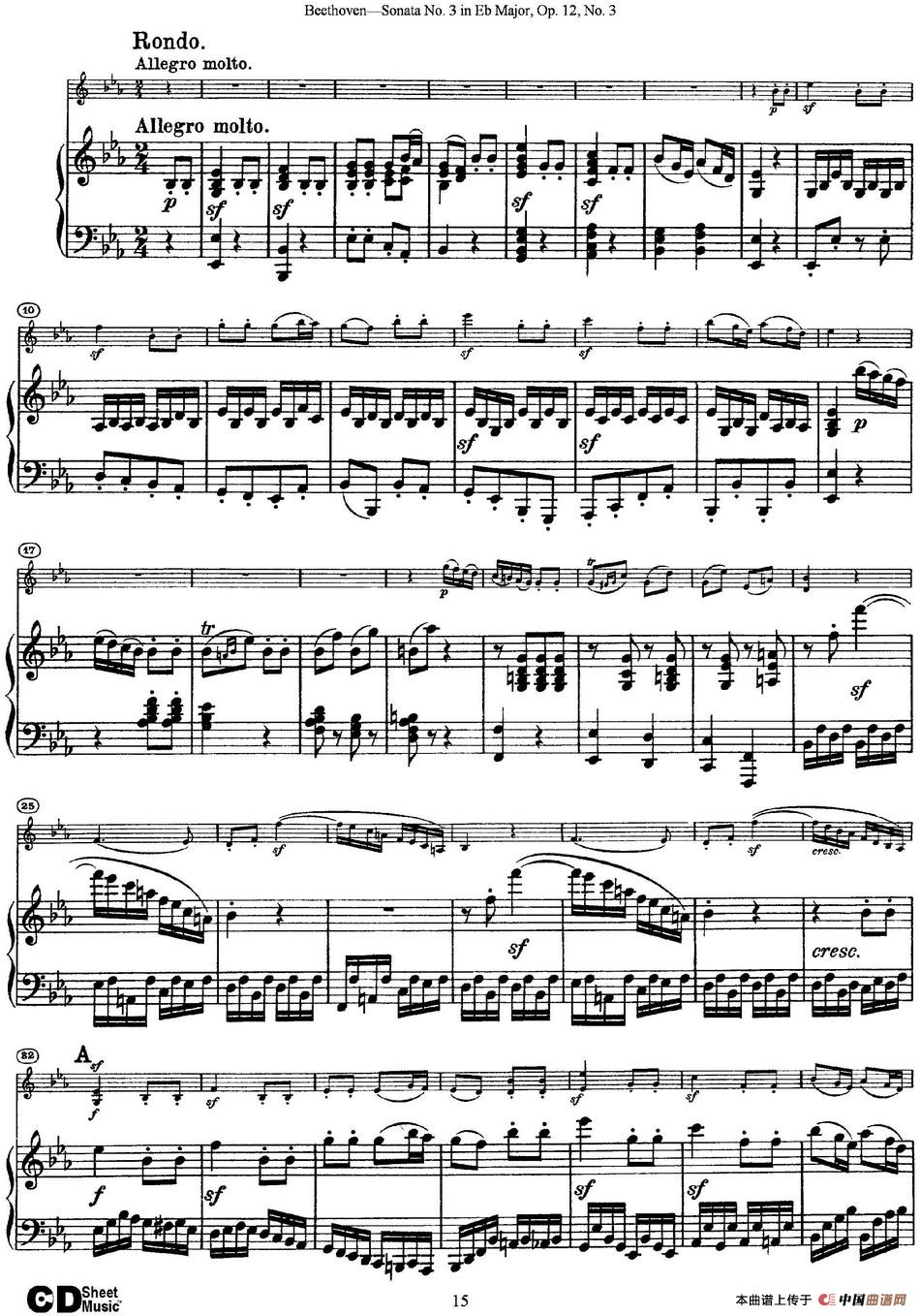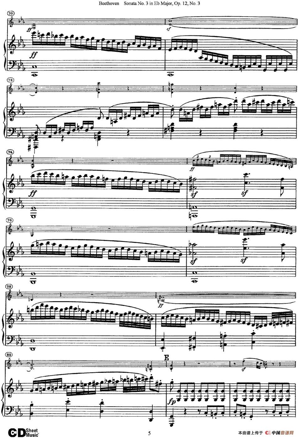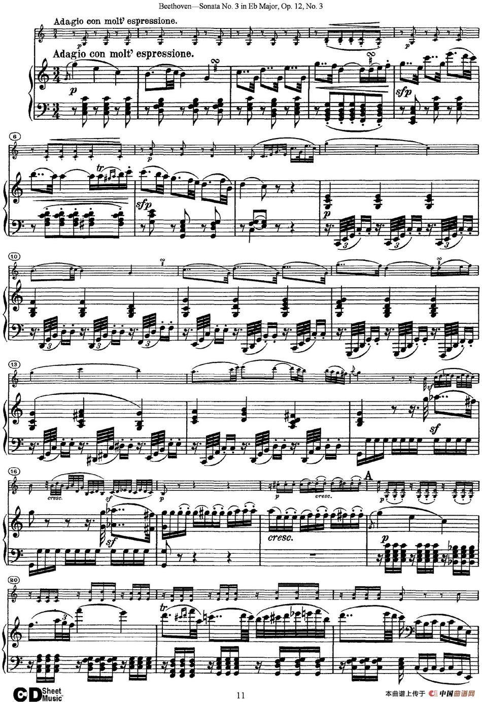 Violin Sonata No.3 in Eb Major Op.12 No.3(小提琴+钢琴伴奏)相关五线谱