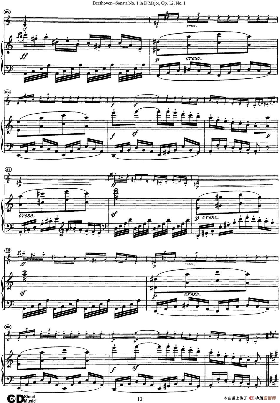 Violin Sonata No.1 in D Major Op.12 No.1(小提琴+钢琴伴奏)相关五线谱
