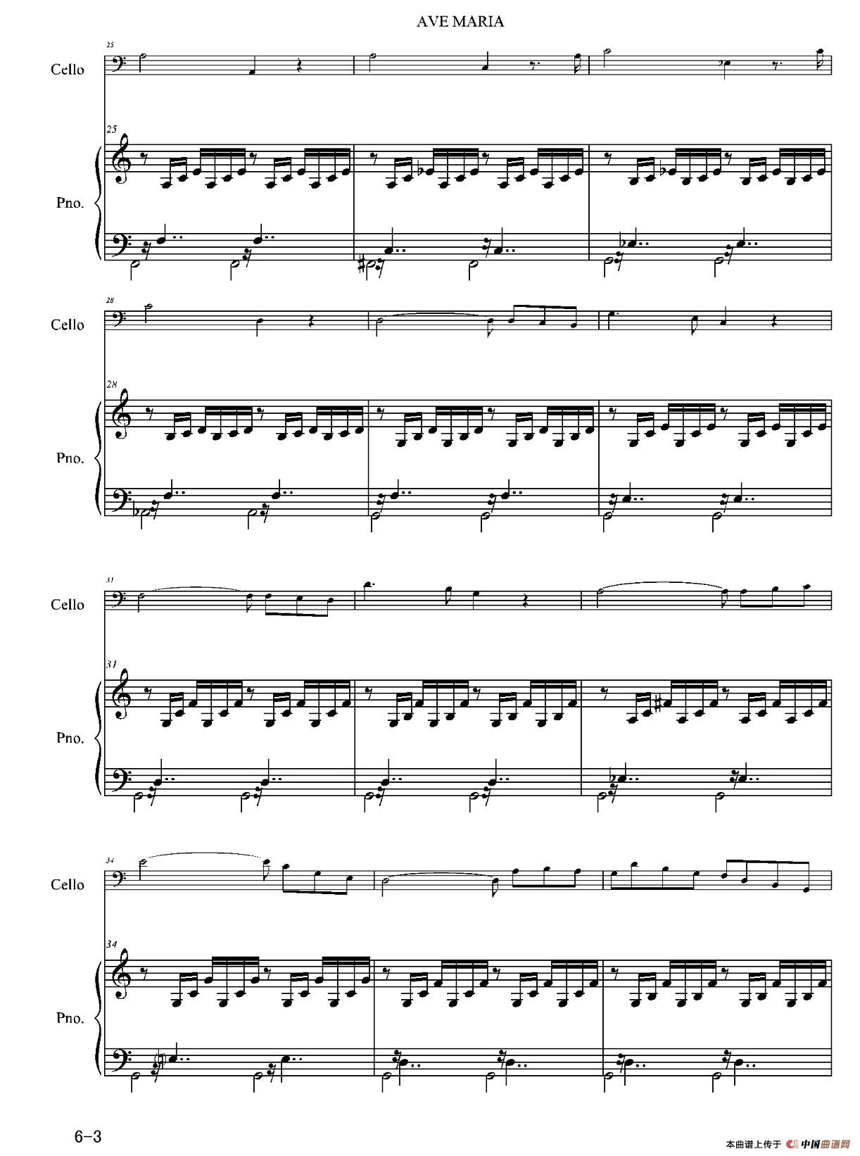 Ave Moria(圣母颂)(大提琴独奏+钢琴伴奏)相关五线谱