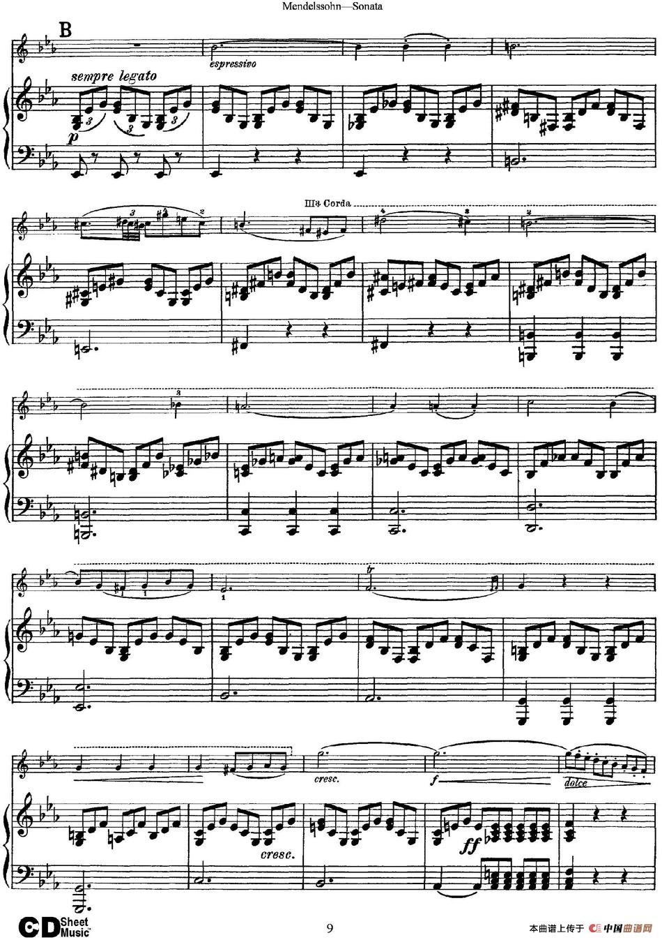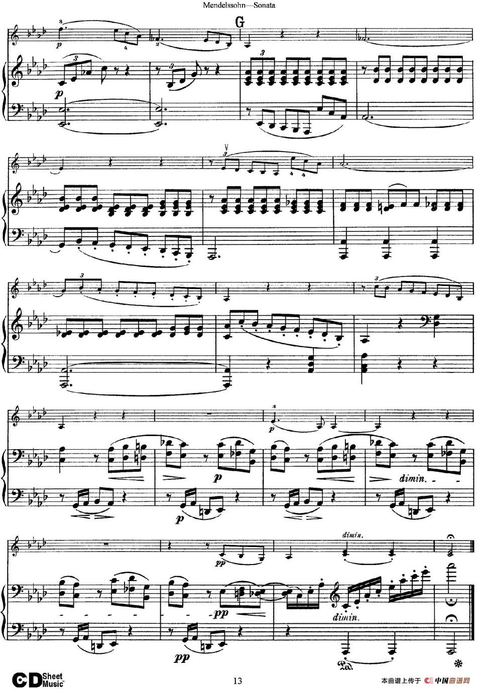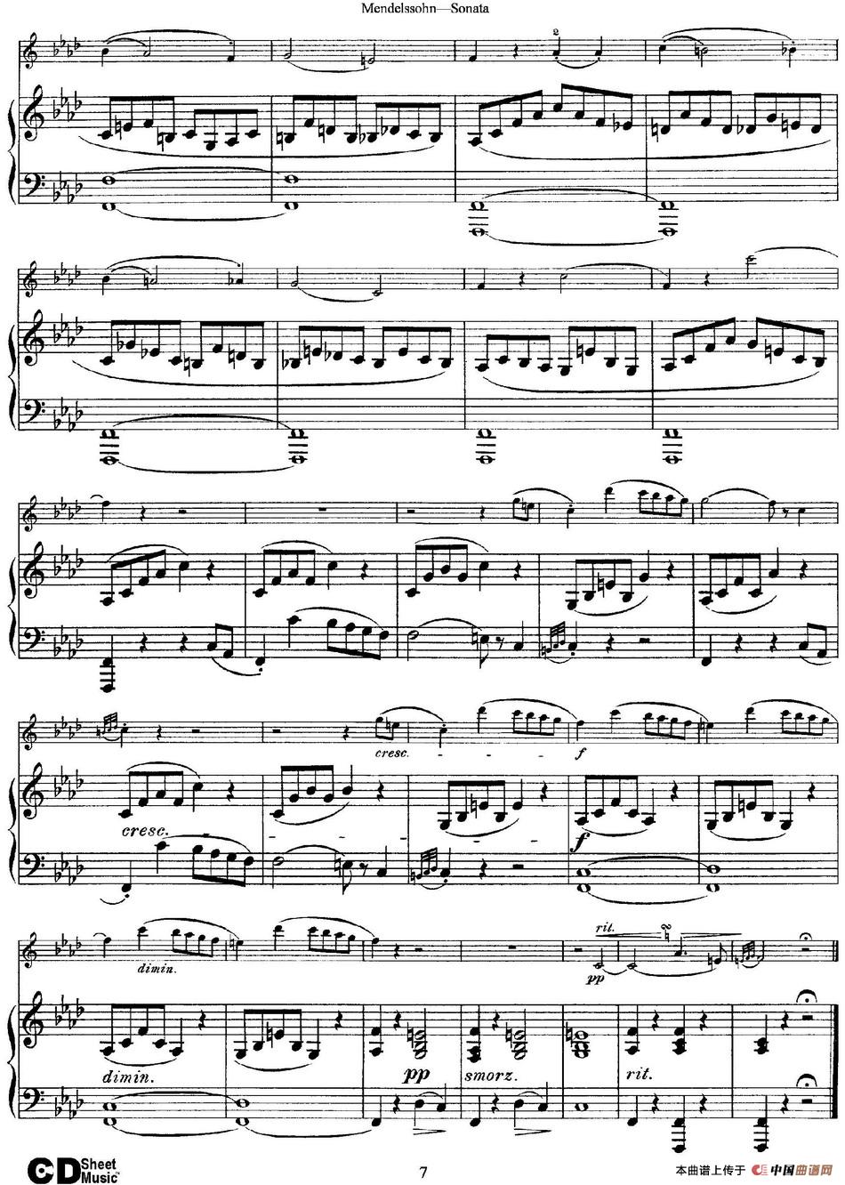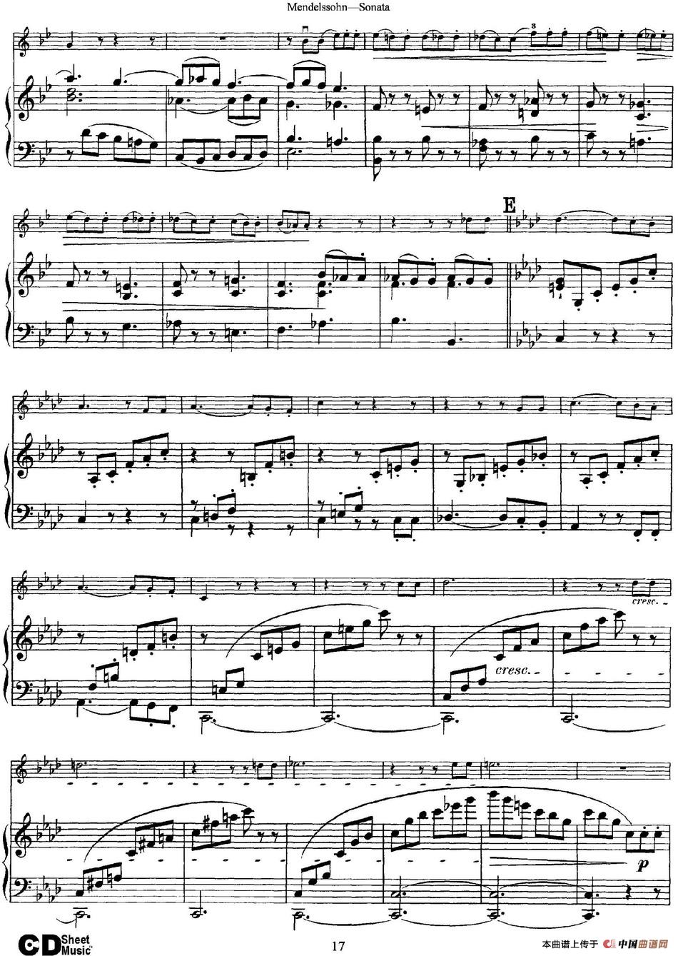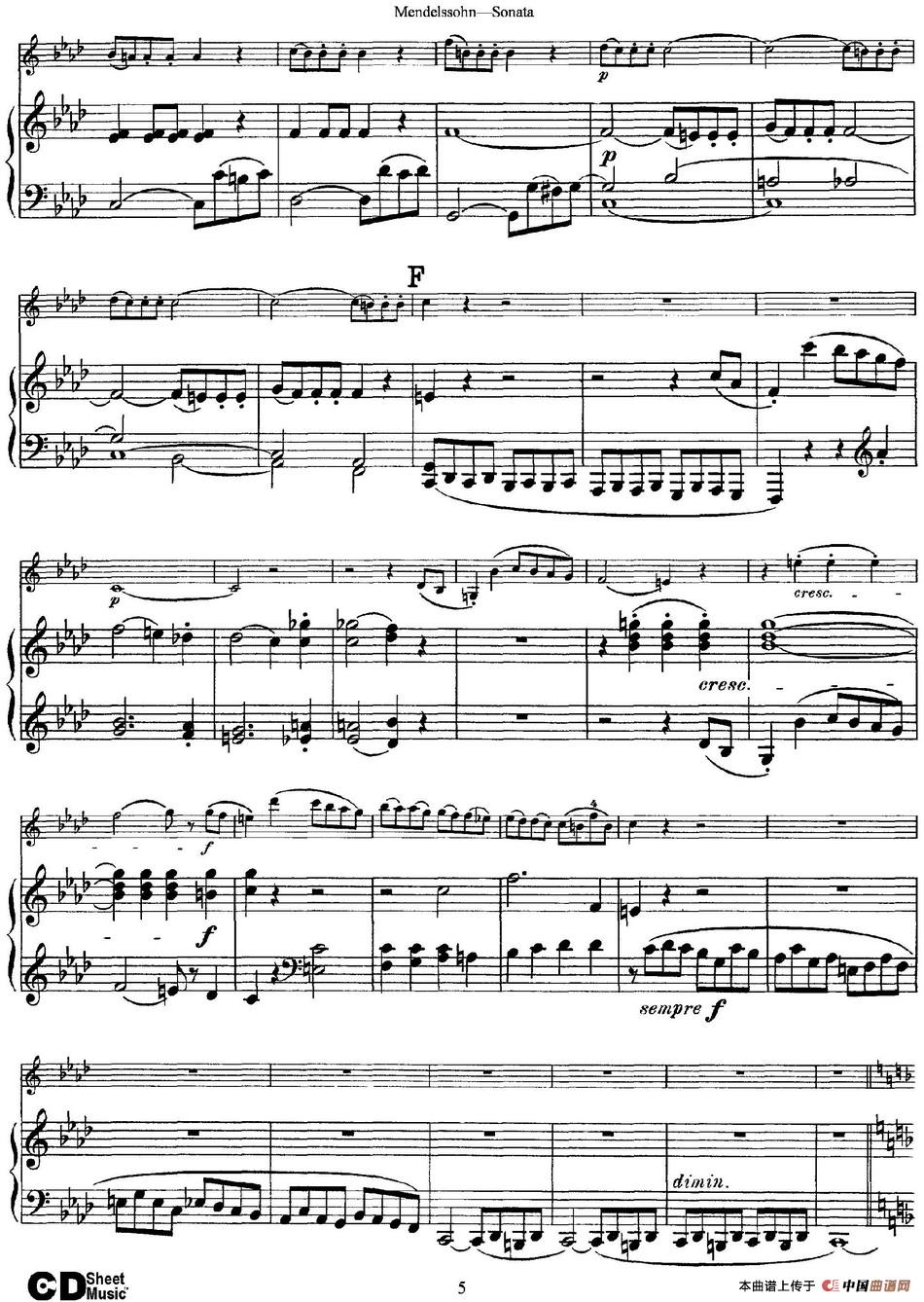 Mendelssohn Violin Sonata(小提琴+钢琴伴奏)相关五线谱