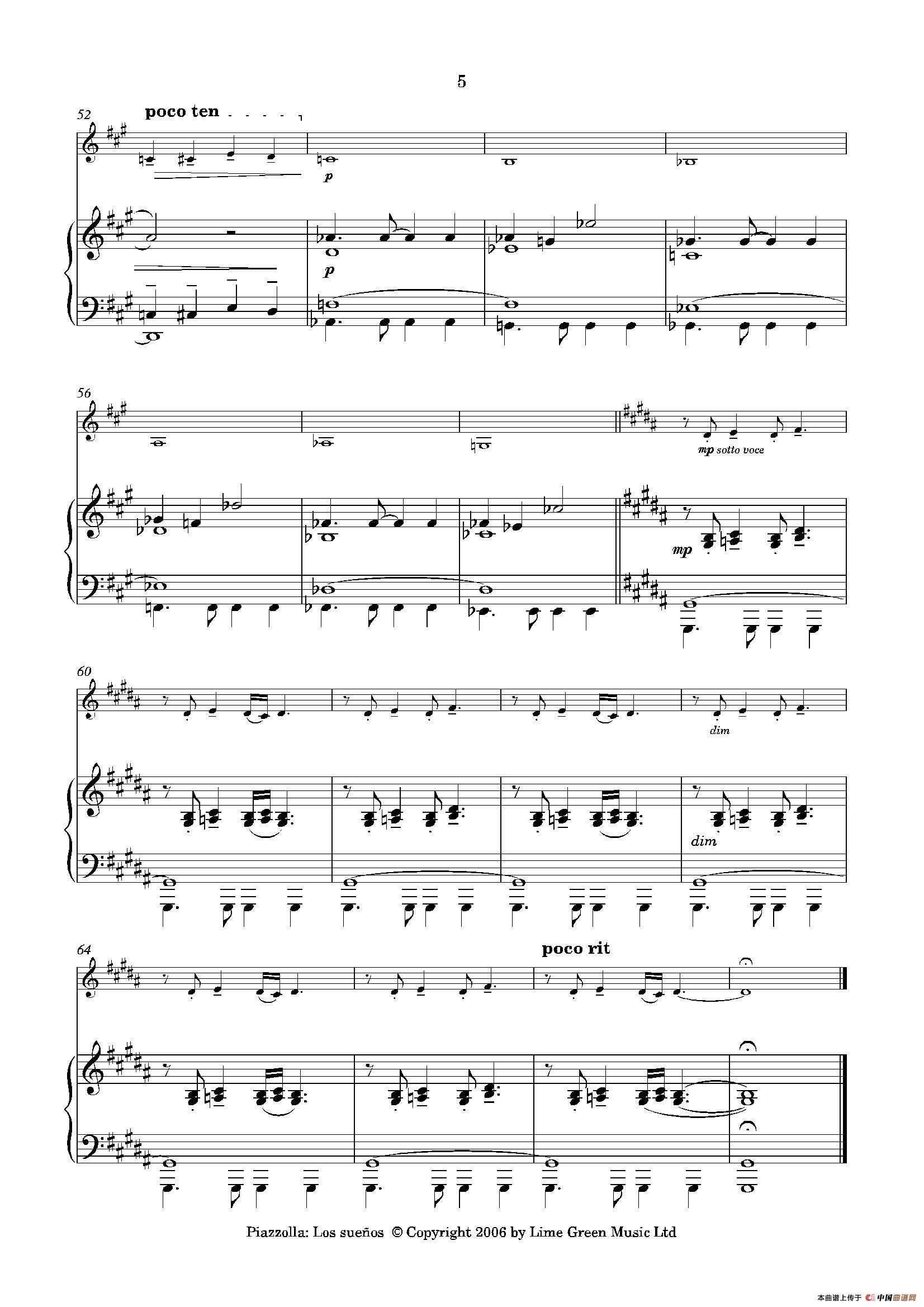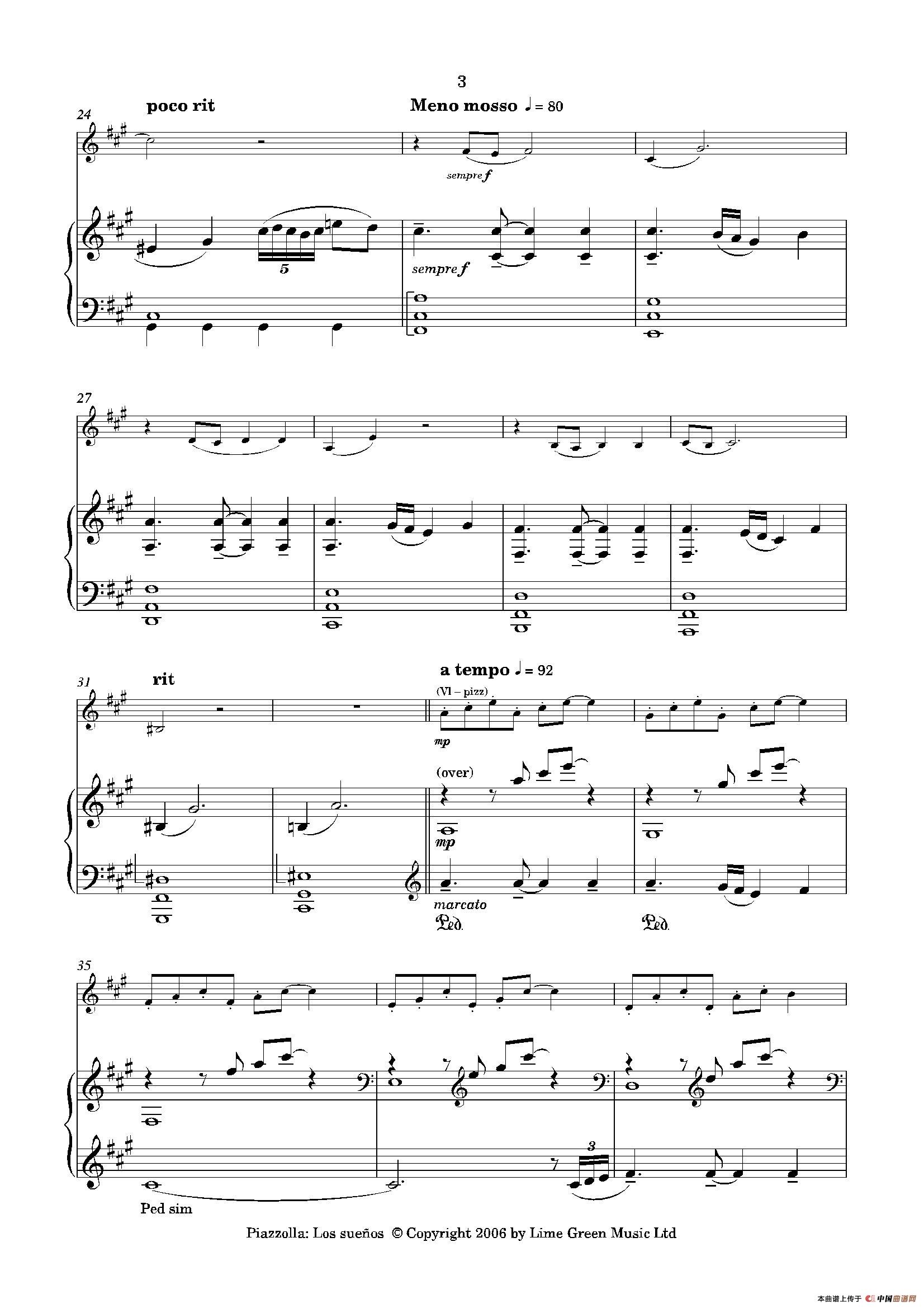 皮亚佐拉曲谱推荐
