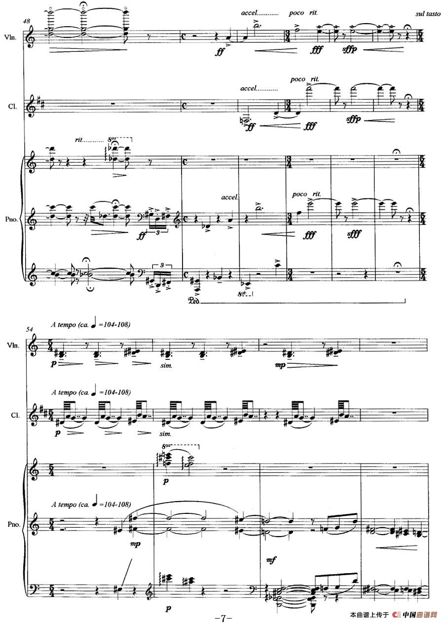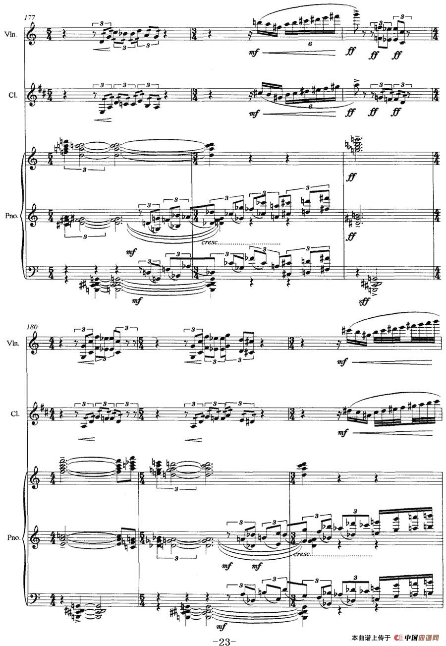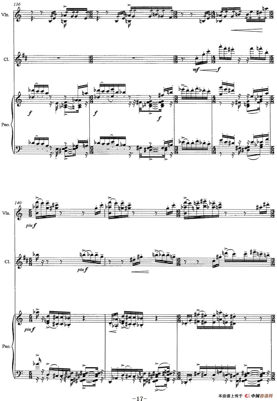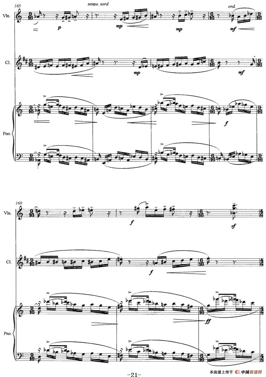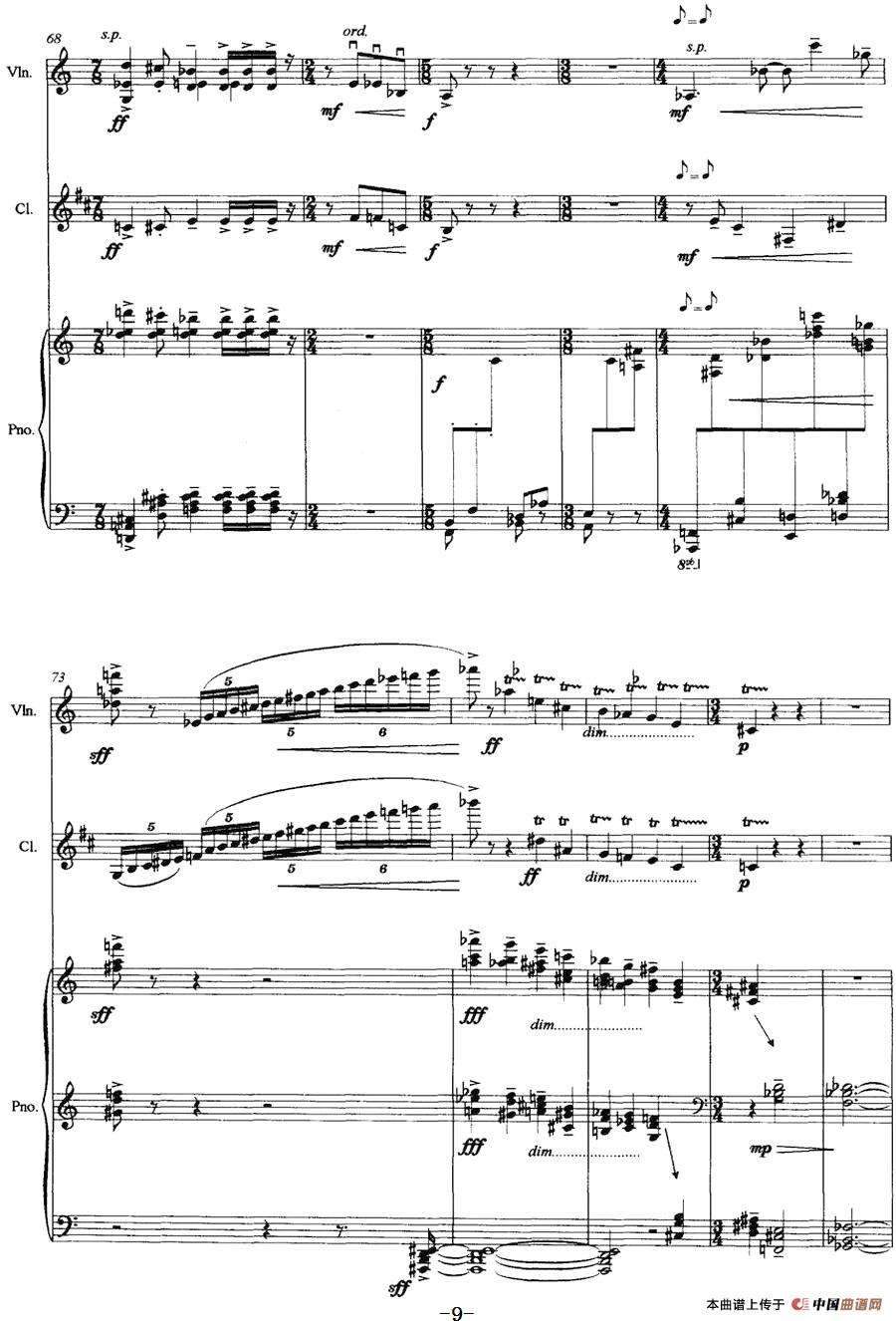 三重奏——遥远的曲调(小提琴+单簧管+钢琴)相关五线谱