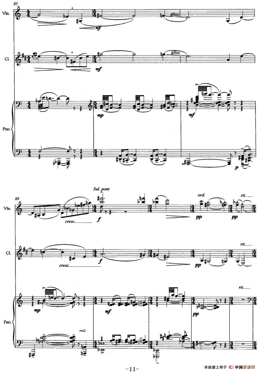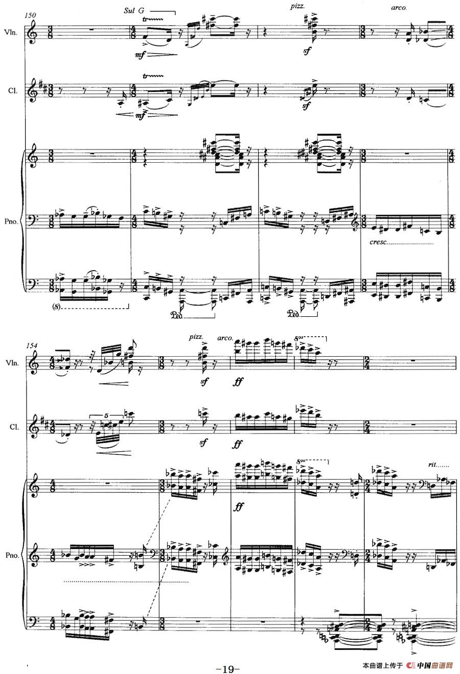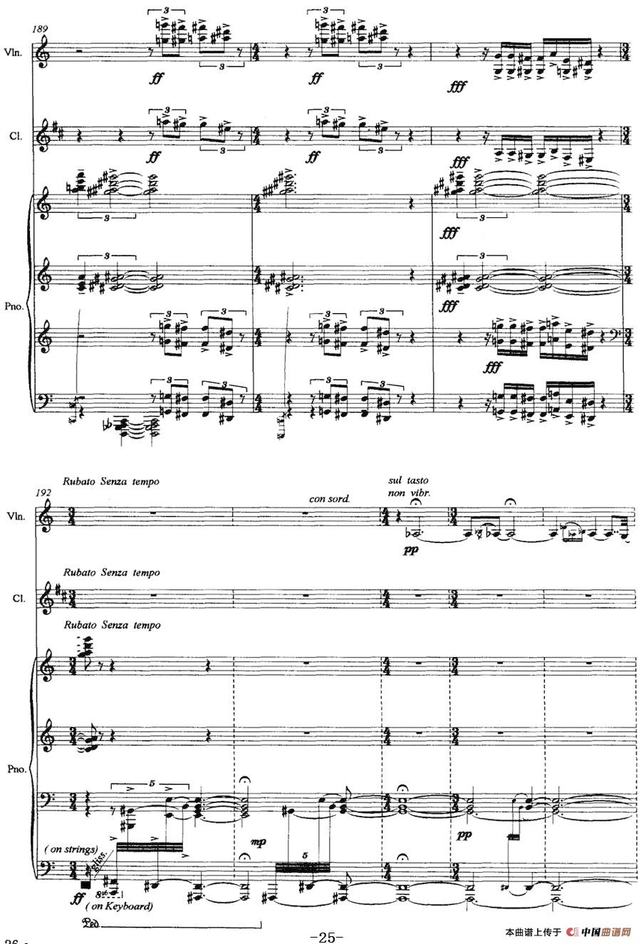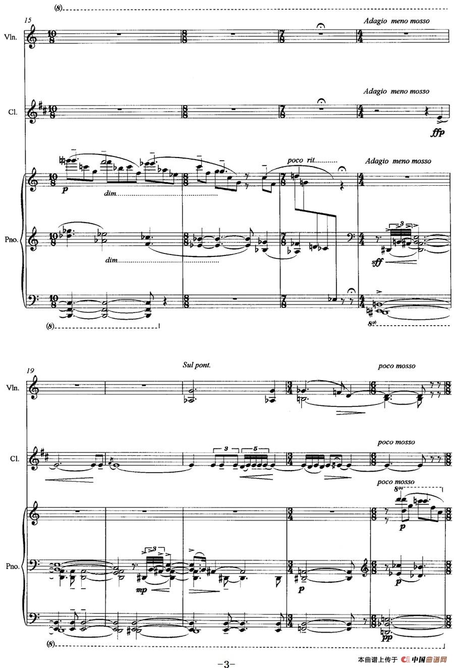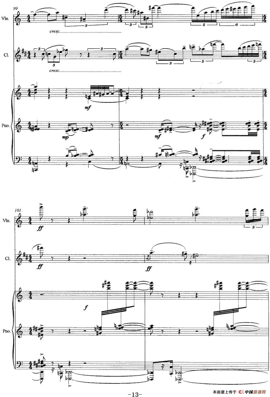 三重奏——遥远的曲调(小提琴+单簧管+钢琴)相关五线谱