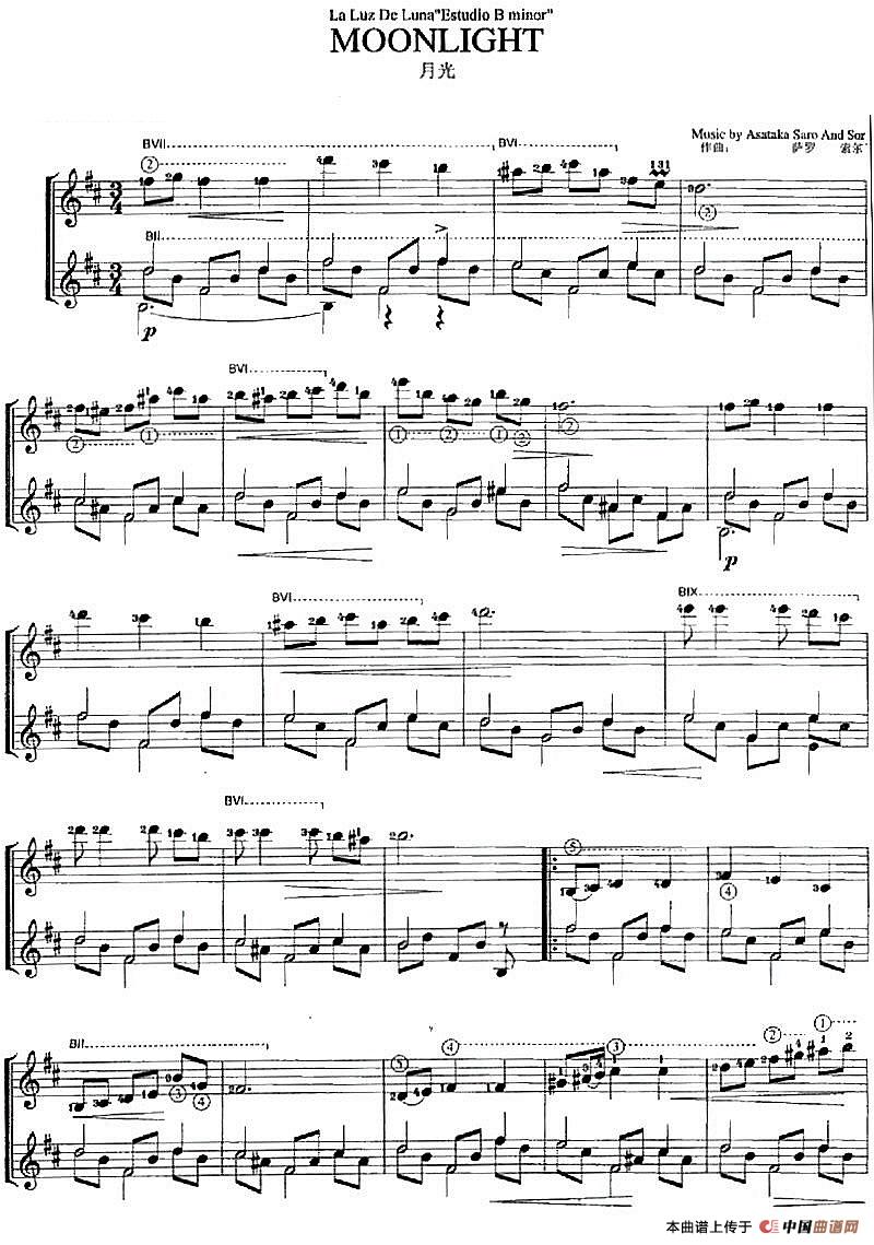 MOONLIGHT 月光(小提琴+吉他)相关五线谱