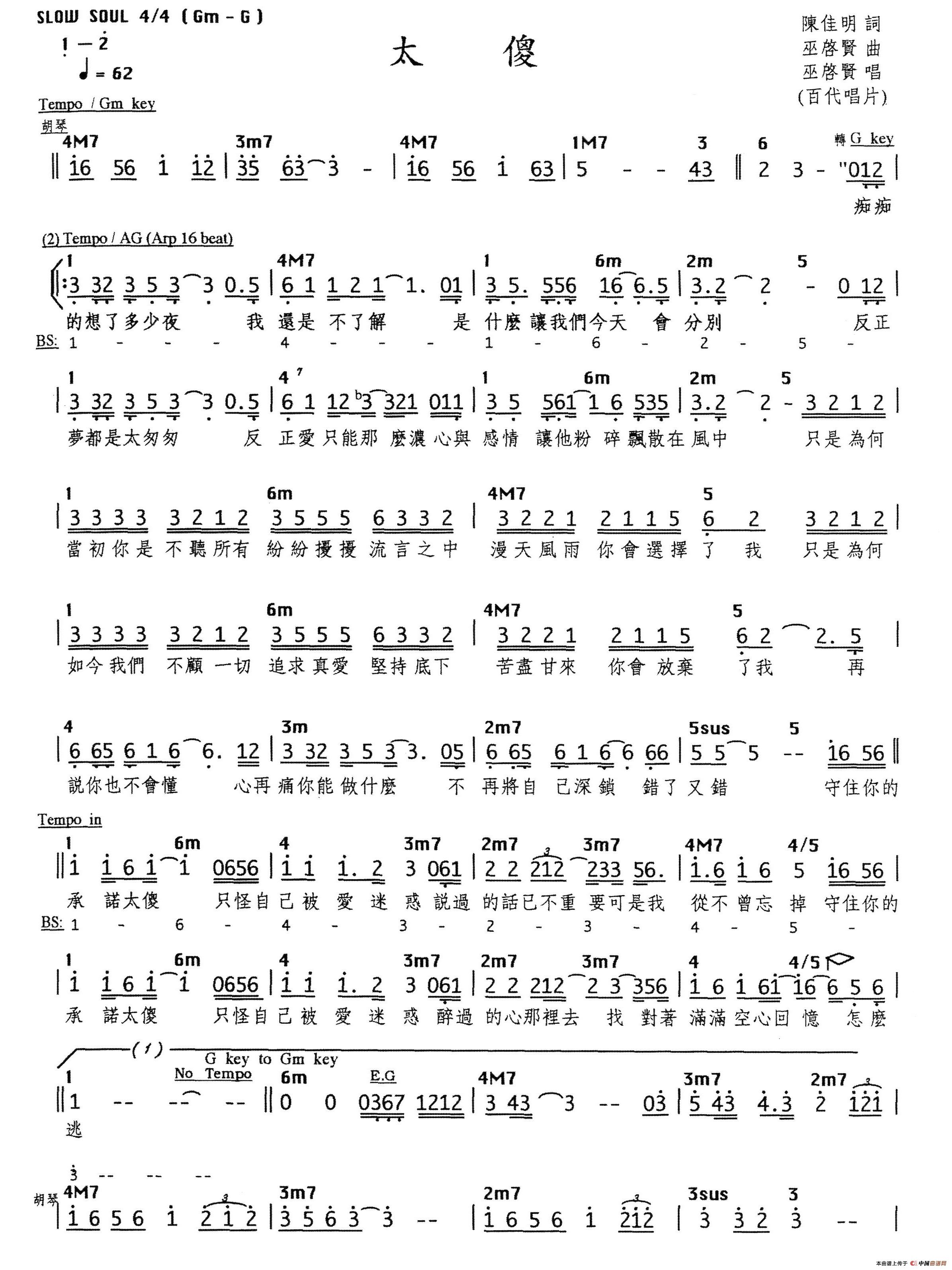 巫启贤曲谱推荐你是我的唯一(邢增华词 巫启贤曲、酷音小伟教学版)年轻的心(陈佳明词 巫启贤曲)太傻也曾相识(高清弹唱六线谱)那一段日子红尘来去一场梦(巫启贤词曲)只爱一点点(电视剧《来来往往》主题歌)团圆也曾相识(粤语歌曲)千千万万个爱你爱情来的时候爱情来的时候笑中有泪别再问我爱你有多深