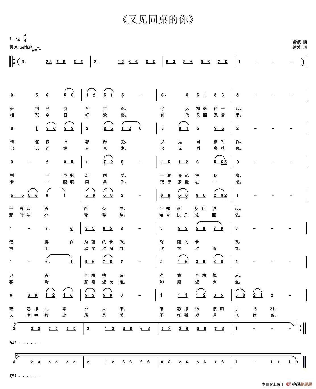 清波曲谱推荐冬天会过去衢州我美丽的故乡举头望明月(飞鹰词 清波曲)听见草原凤凰木回草原(张树琦词 清波曲)感叹人生江南有雨巷想你的夜静悄悄新打工谣请听我对你说同学情(清波 词曲)草原牧歌(洛扎.曲吉甲措词 清波曲)