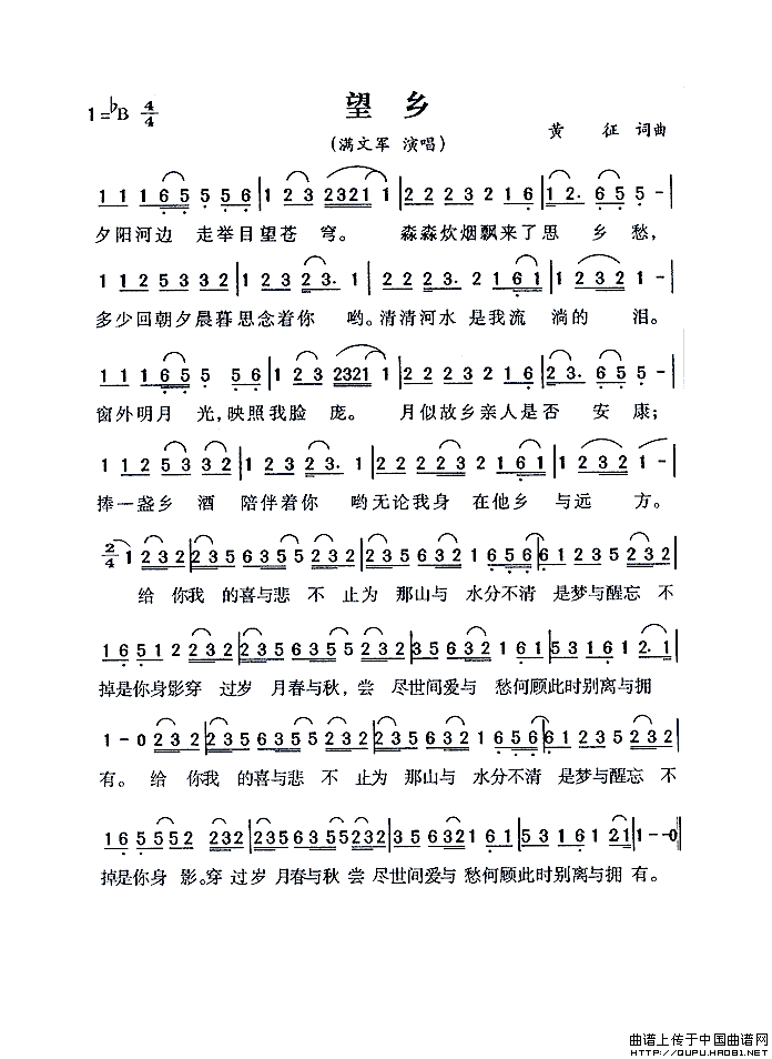望乡词 正谱(降E调)