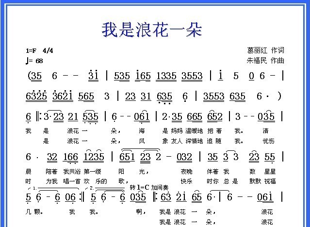 我是浪花一朵相关五线谱