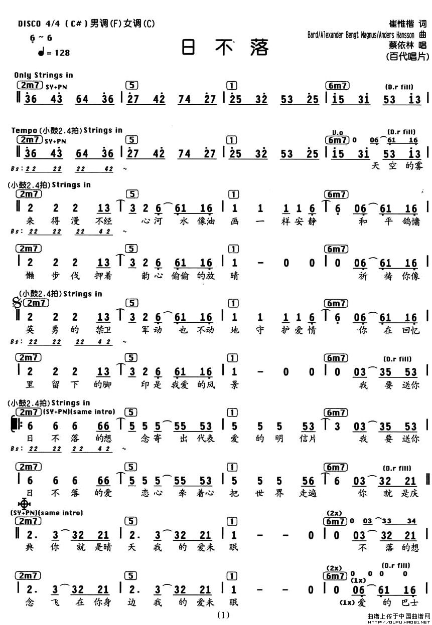 日不落(编配乐谱)