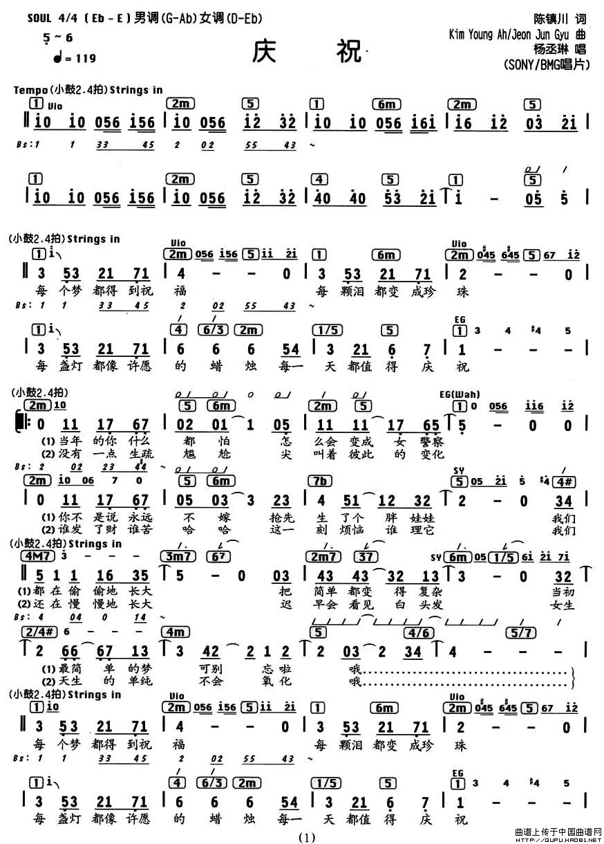 庆祝(编配乐谱)相关五线谱