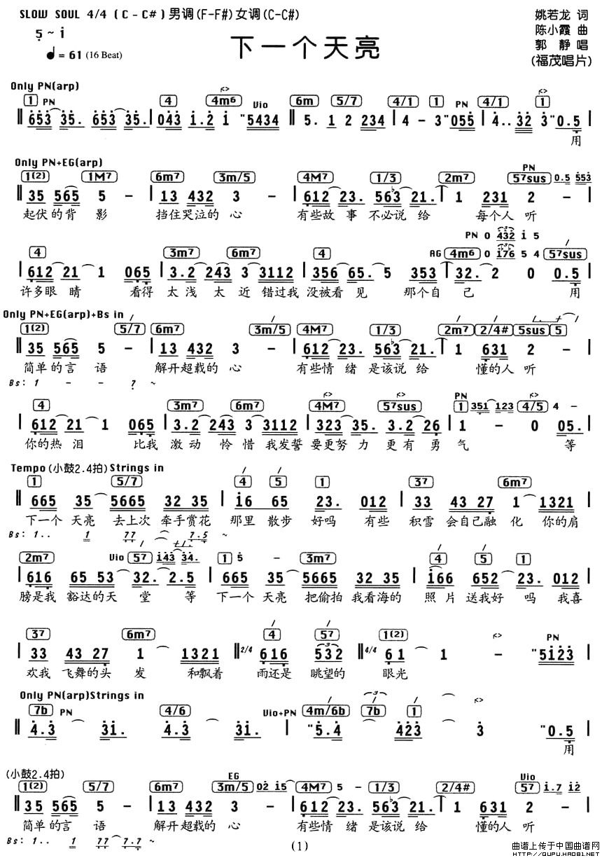 陈小霞曲谱推荐十年(深蓝雨吉他弹唱版)好久不见微甜的回忆(电影《重返20岁》插曲)明天的自己可不可以不勇敢有一天我会一起吃苦的幸福黑暗中的漫舞约定看得最远的地方(姚若龙词 陈小霞曲)好久不见(林夕词 陈小霞曲)你太猖狂每一天都不同可不可以不勇敢(编配乐谱)约定温柔的慈悲(尤克里里谱)昨天(管启源词 陈小霞曲)他不爱我成全你看你看月亮的脸(梦之旅组合)