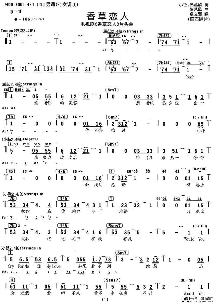 香草恋人(同名电视剧片头曲、编配乐谱)相关五线谱