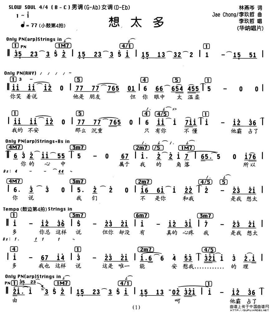 想太多(编配乐谱)
