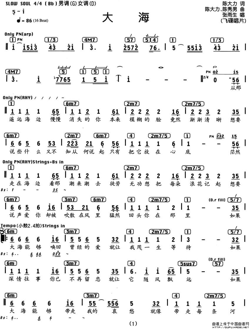 大海(陈大力词曲、编配乐谱)相关五线谱