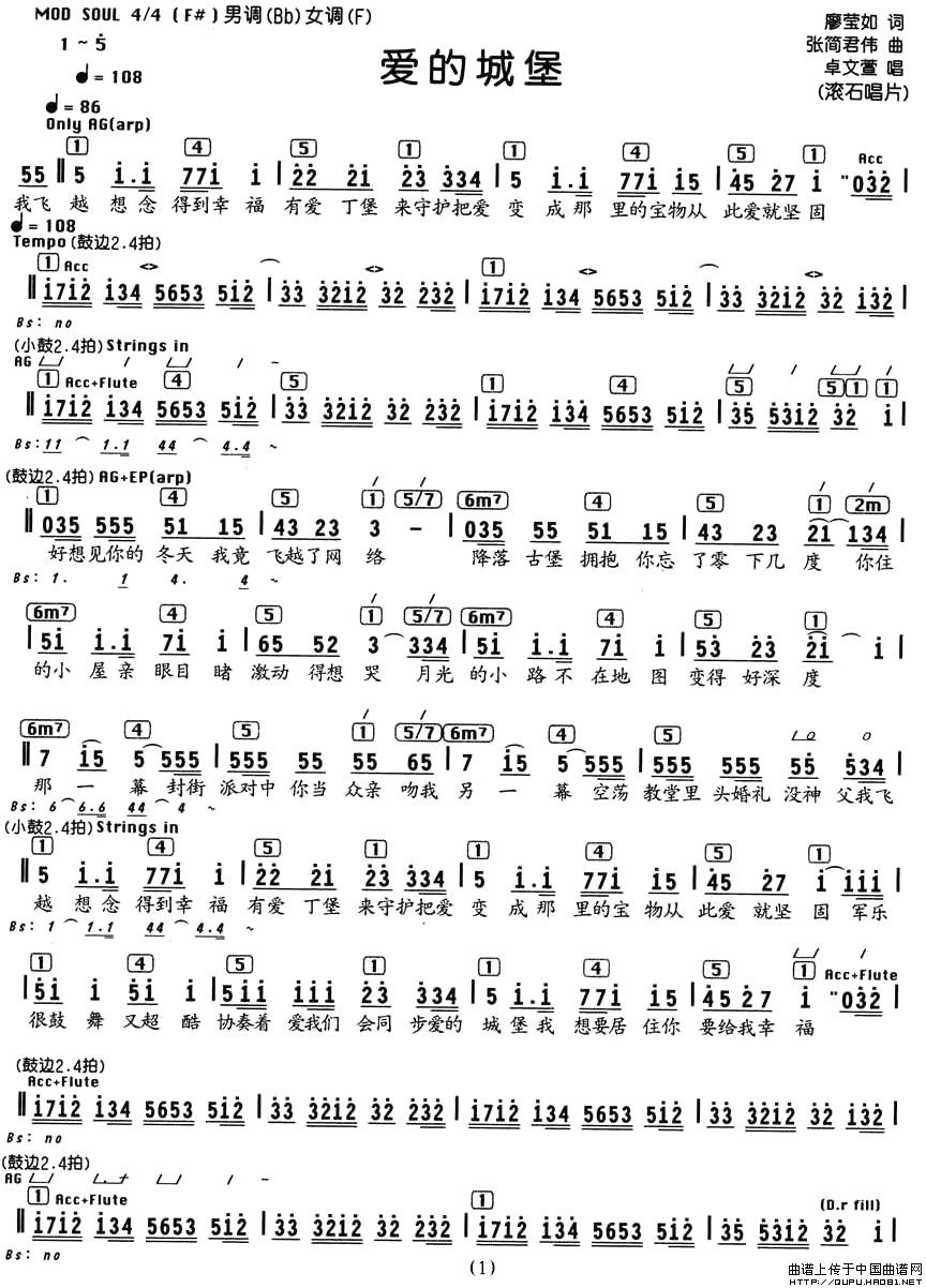 爱的城堡(编配乐谱)相关五线谱