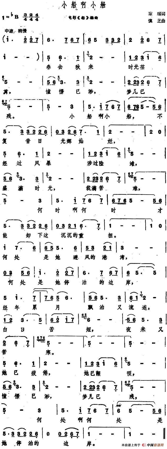 小船啊小船(电影《船》插曲)相关五线谱