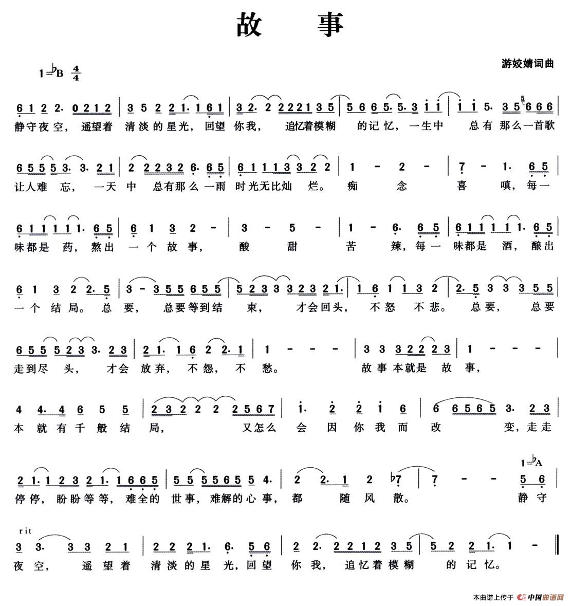 故事(游姣婧 词曲)相关五线谱