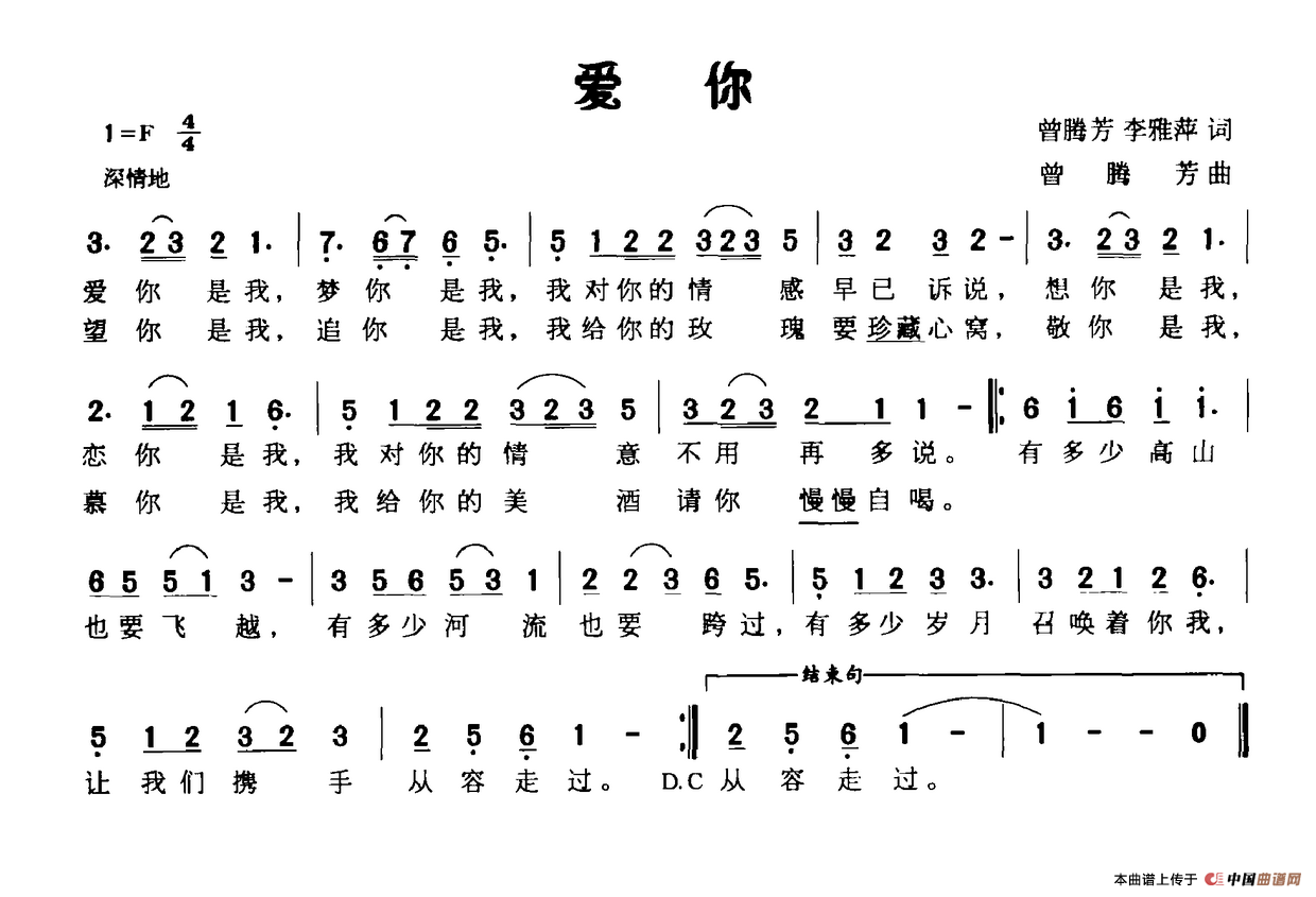 曾腾芳曲谱推荐神鹰在太空招手梦里故乡(曾腾芳词曲)藏羚羊(曾腾芳词曲)跳巴山(牟年玖词 曾腾芳曲)相知永远永远(曾腾芳词曲)故乡之恋(曾腾芳词曲)家乡的栀子花喷喷香故乡谣(曾腾芳 词曲)阳台上飞来一只小鸟我们像青青的小水杉(曾腾芳词曲)童年的伙伴(曾腾芳 词曲)钓鱼岛(曾腾芳词曲)城市让生活更美好(曾腾芳 词曲)我的江汉油田(曾腾芳词曲)天下疗养院是一家(潘禺 良艺词 曾腾芳曲)江南诗画(刘伟词 曾腾芳曲)白鸽和天鹅(张良义 曾腾芳词 曾腾芳曲)吴起,你在我心里(曾腾芳词曲)红豆情(黎耀成词 曾腾芳曲)梅花之歌(曾腾芳词曲)