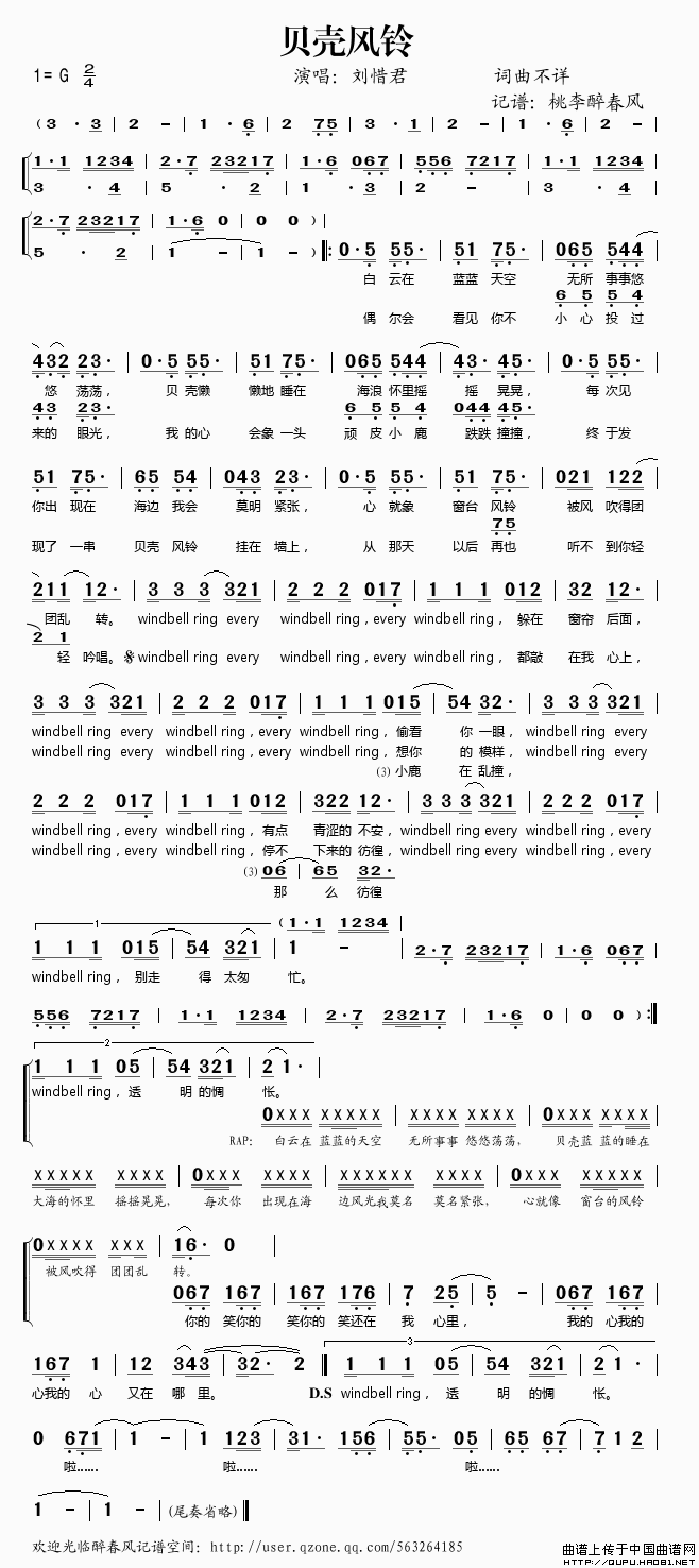 贝壳风铃相关五线谱