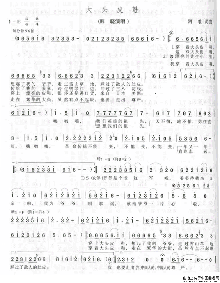 大头皮鞋相关五线谱