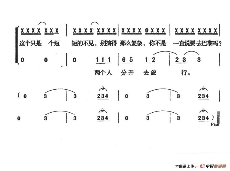 分开旅行相关五线谱