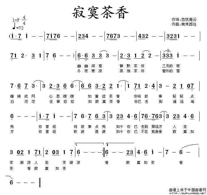 寂寞茶香相关五线谱