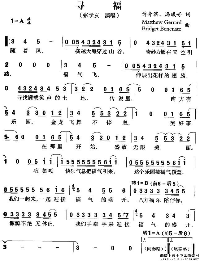 寻福相关五线谱