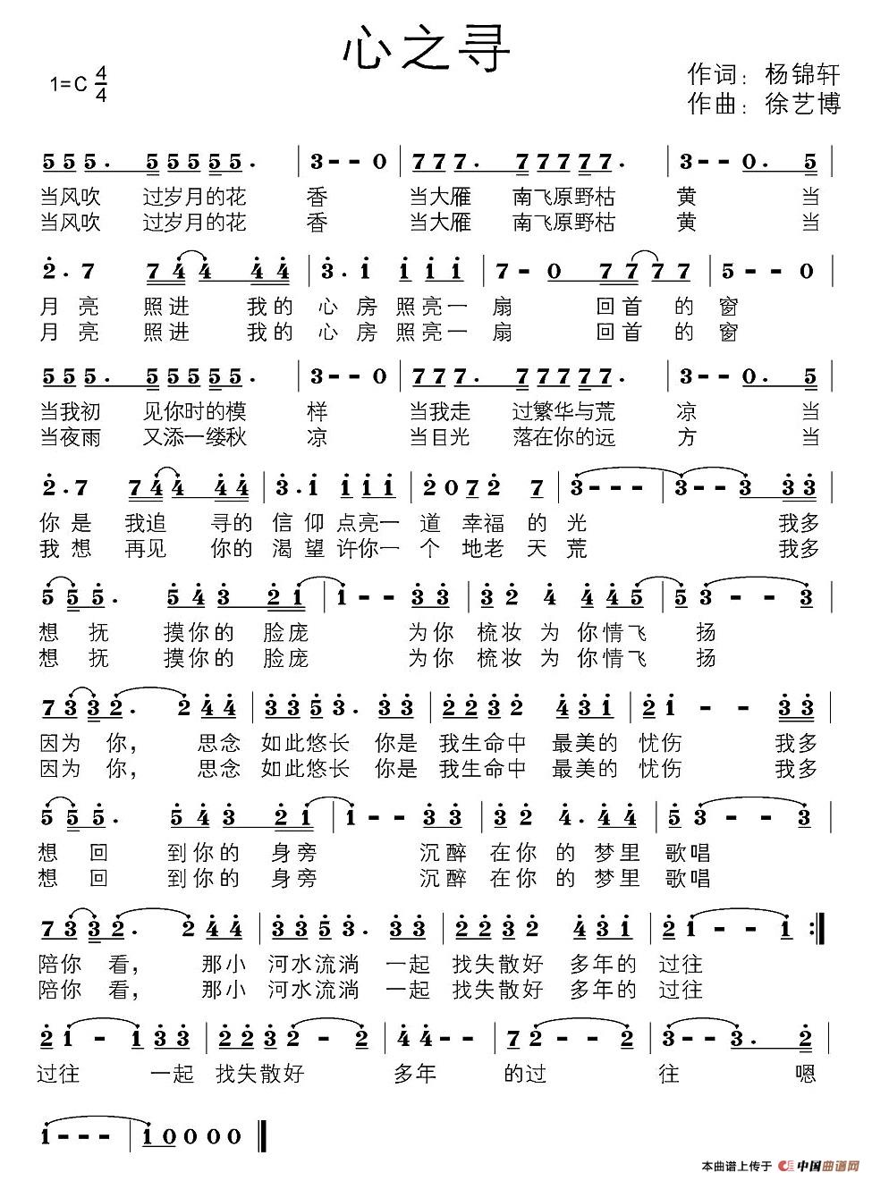 心之寻相关五线谱