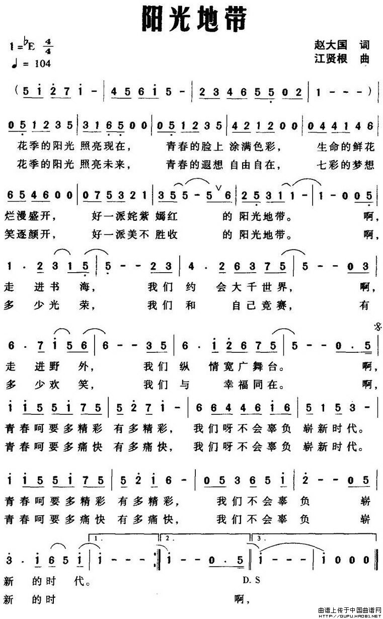 阳光地带(赵大国词 江贤根曲)