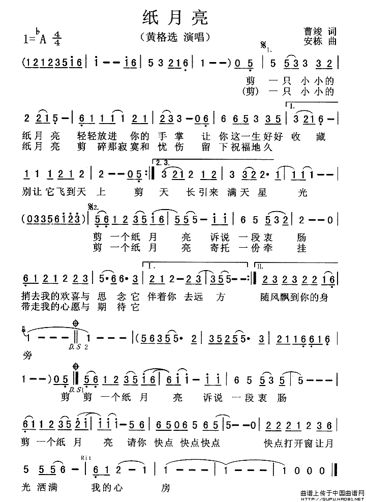纸月亮相关五线谱