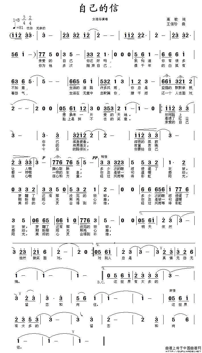 自己的信相关五线谱