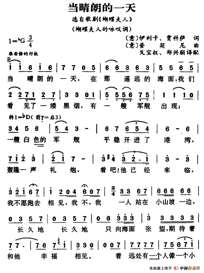 当晴朗的一天 (歌剧《蝴蝶夫人》选曲、蝴蝶夫人的咏叹调)相关五线谱