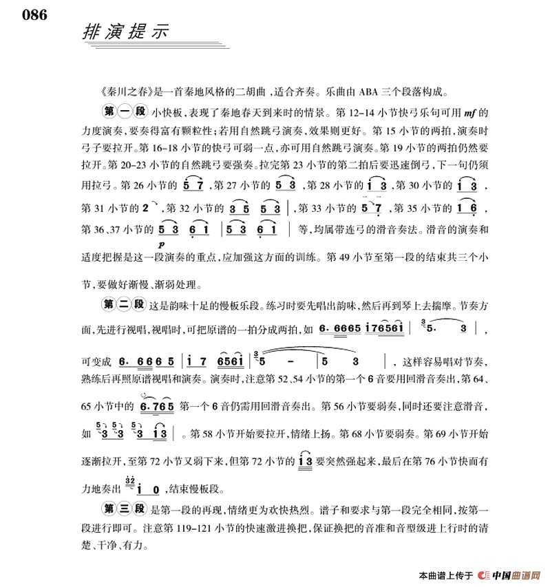 秦川之春(二胡+扬琴伴奏)相关五线谱
