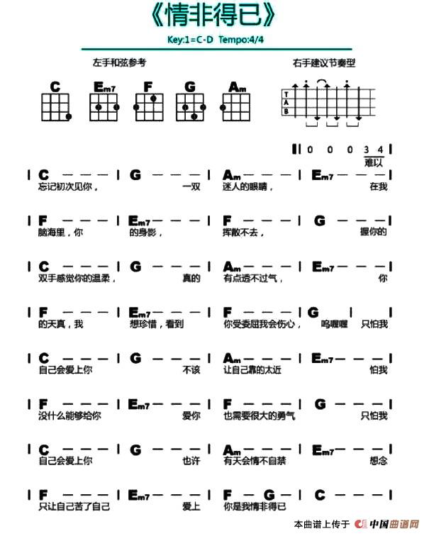 情非得已(尤克里里谱)