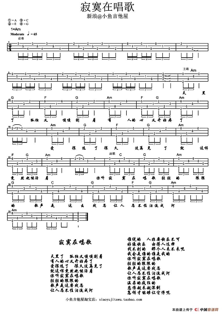 寂寞在唱歌(尤克里里谱)相关五线谱