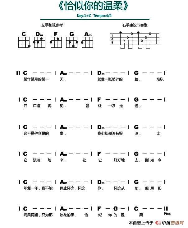 《恰似你的温柔》高清吉他谱(单吉他弹唱版)