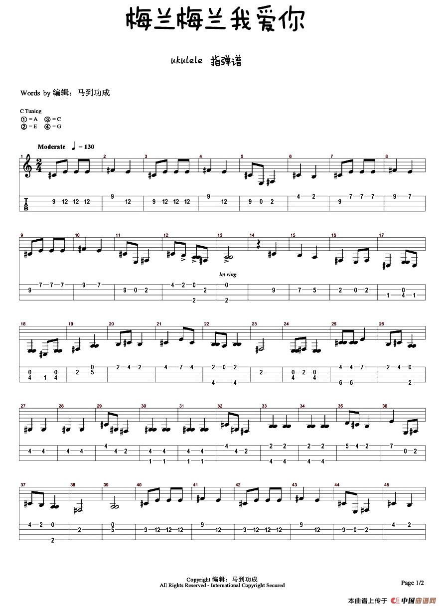 梅兰梅兰我爱你(尤克里里指弹谱)