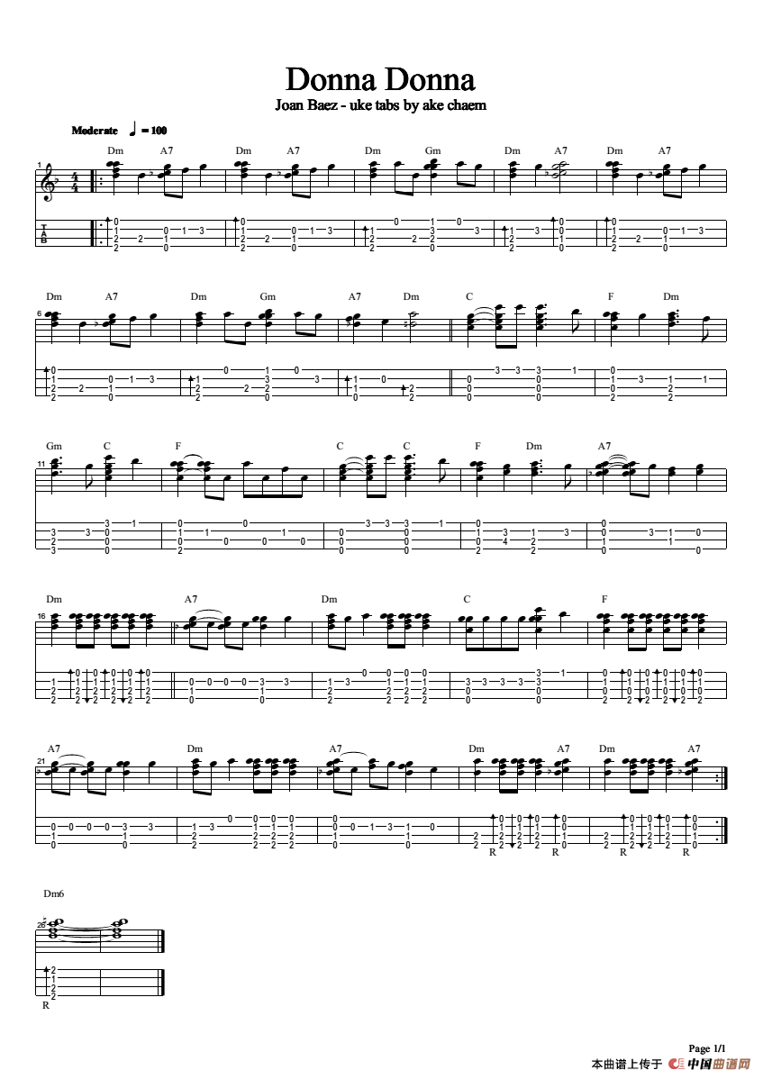 Donna Donna(尤克里里指弹谱)相关五线谱
