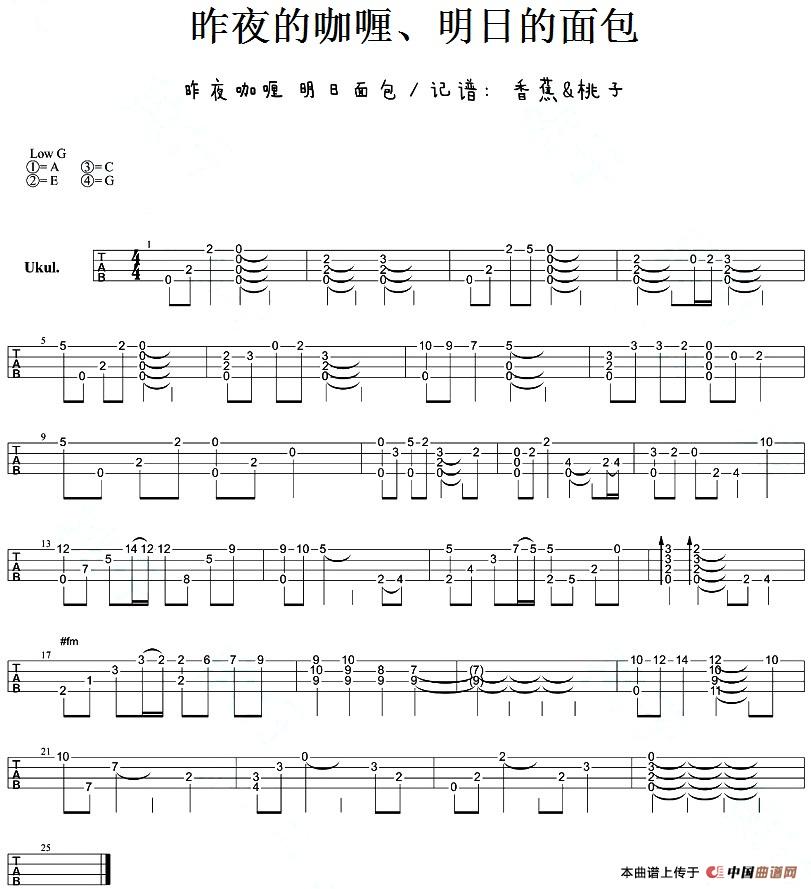 昨夜的咖喱、明日的面包(尤克里里指弹谱)相关五线谱