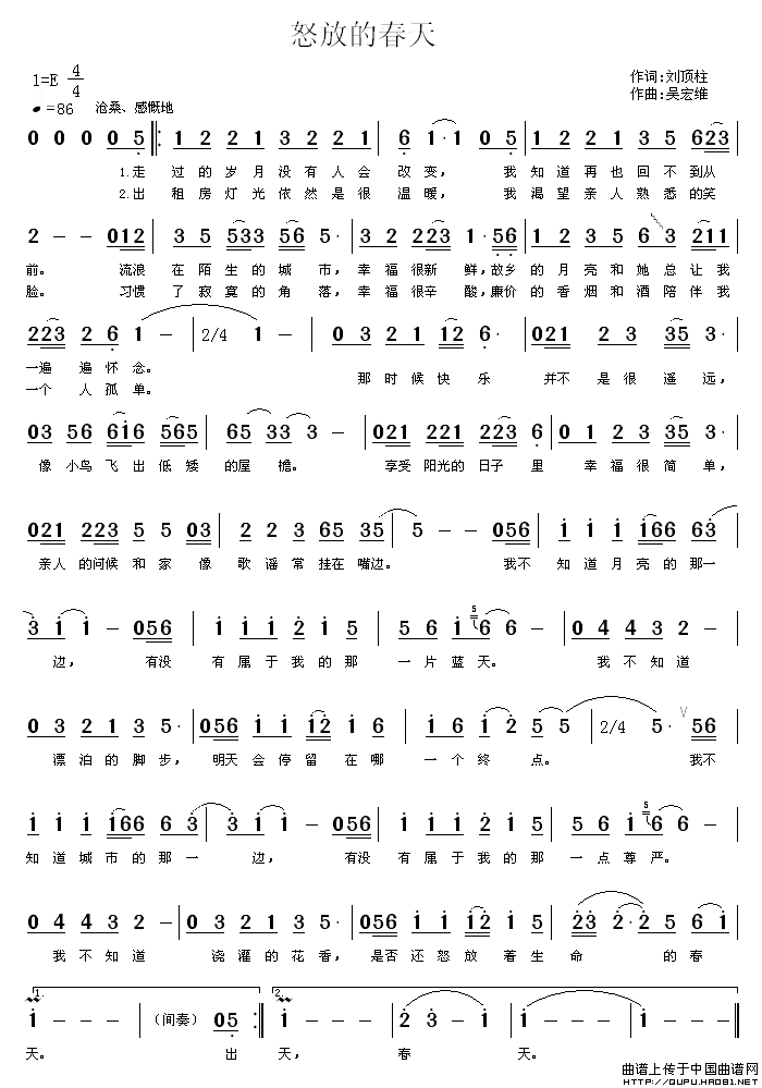 吴宏维曲谱推荐心中的天堂(佚忆剑虹词 吴宏维曲)问情(木木道词 吴宏维曲)国泰民安福万千西北高原爱要如何重复千百年的梦刘三姐的故乡(又名:国色天香三姐故乡)雨荷千千梦在草原(王小雅词 吴宏维曲)盼(许剑虹词 吴宏维曲)喜气洋洋(李荫保词 吴宏维曲)梦乡(郑琳词 吴宏维曲)情系老家春雨江南(刘顶柱词 吴宏维曲)雪山下的家音画柳城梦的翅膀(吴宏维 词曲)黄土黄,黄沙黄中国信心(张逢康词 吴宏维曲)我爱梦中大草原